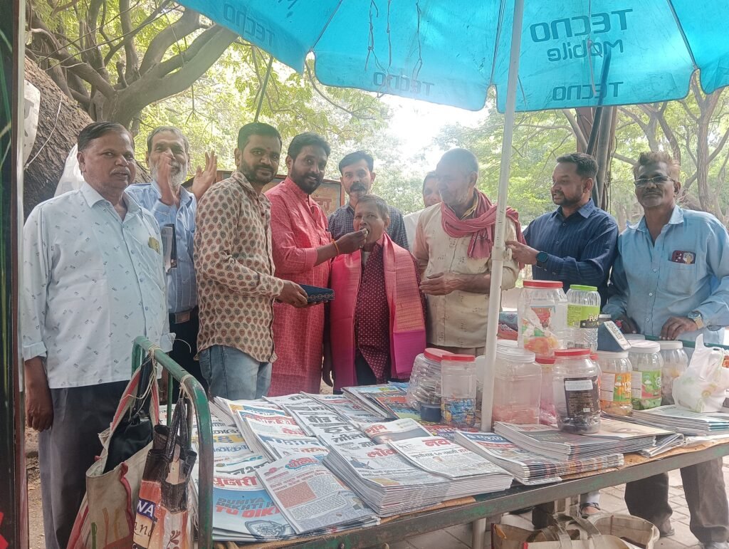 २५ ते ३० वारांपासून वृत्तपत्र विक्री करणारे सुरेश (नाना ) खाटोकार, राजू कासट यांना प्रत्यक्ष भेटून त्यांचा सत्कार करीत त्यांना मनःपूर्वक शुभेच्छा दिल्या.