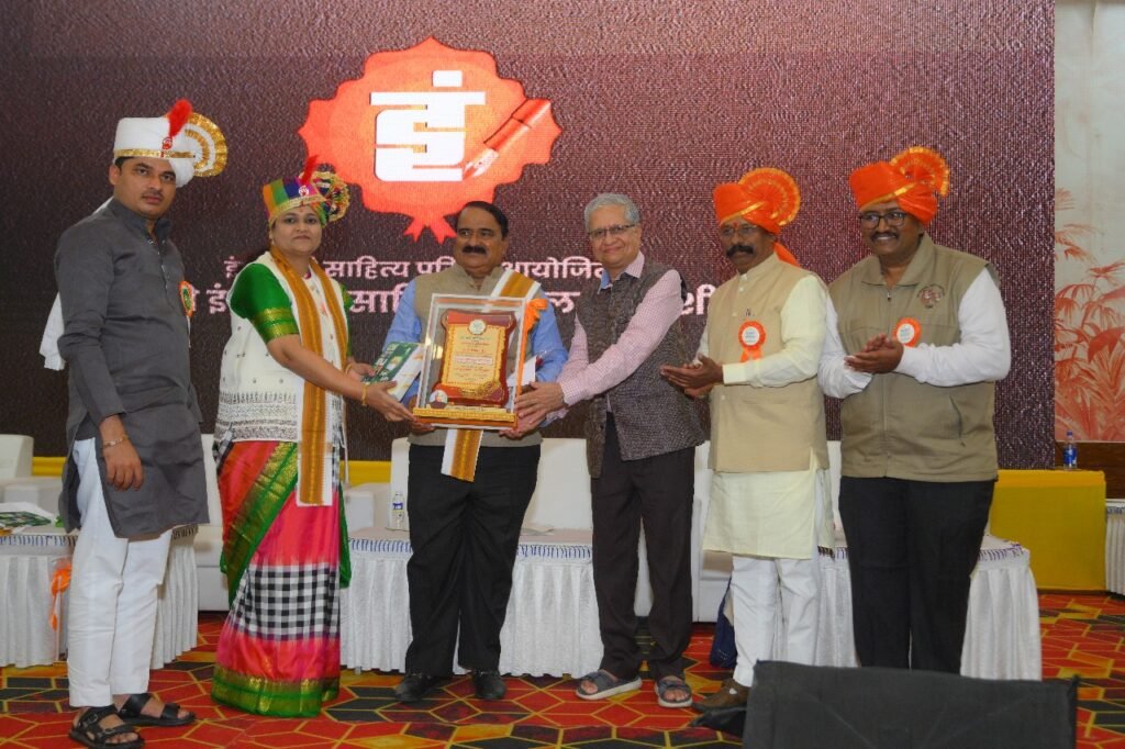 पिंपरी, (महाराष्ट्र ब्रेकिंग न्यूज) – ‘मातृभाषेतील शिक्षण जीवनातील वादळे सोसण्याचे बळ देते!’ असे विचार सुप्रसिद्ध कादंबरीकार आणि सातारा येथील नियोजित ९९व्या अखिल भारतीय साहित्य संमेलनाचे अध्यक्ष विश्वास पाटील यांनी पुण्यश्लोक अहिल्यादेवी होळकर साहित्यनगरी, जयगणेश बॅंक्वेट हॉल, मोशी येथे (रविवार, दिनांक २३ नोव्हेंबर २०२५) व्यक्त केले. इंद्रायणी साहित्य परिषद आयोजित चौथ्या इंद्रायणी साहित्य संमेलनात महाराष्ट्र राज्य विश्वकोश निर्मिती मंडळाचे माजी अध्यक्ष डॉ. राजा दीक्षित यांच्या हस्ते यशवंतराव चव्हाण प्रज्ञावंत साहित्य पुरस्कार स्वीकारल्यानंतर विश्वास पाटील बोलत होते. संमेलनाध्यक्षा डॉ. सीमा काळभोर, स्वागताध्यक्ष नीलेश बोराटे, इंद्रायणी साहित्य परिषदेचे संस्थापक अरुण बोऱ्हाडे, परिषदेचे अध्यक्ष संदीप तापकीर यांची व्यासपीठावर प्रमुख उपस्थिती होती.