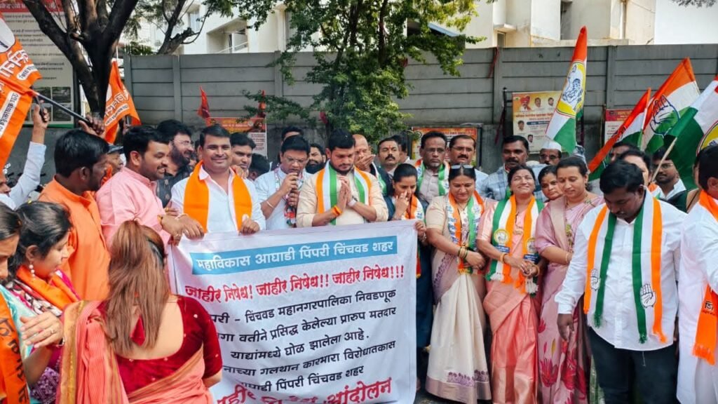 पिंपरी–चिंचवड महानगरपालिका क्षेत्रात प्रारूप मतदार याद्यांमध्ये झालेले प्रचंड गोंधळ, नावांची मोठ्या प्रमाणावर झालेली कपात,अनेक प्रभागातील मतदार याद्या इकडच्या तिकडे प्रभागात जोडण्यात आल्या आहेत त्याचबरोबर अनेक मतदारांचे प्रभाग चुकले आहेत ,हजारो मतदार दुबार नावे झालेले आढळून येत आहे ,मतदार यादीतील विसंगती आणि प्रशासनाकडून झालेली गंभीर दुर्लक्ष यामुळे नागरिकांच्या मतदानाच्या हक्कावर थेट परिणाम झाला असून, या सर्व प्रकाराला निवडणूक प्रक्रियेवरील अविश्वास आणि लोकशाहीवर केलेला आघात असे स्पष्ट शब्दांत वर्णन करत आज महाविकास आघाडी आणि समविचारी पक्षांच्या वतीने पिंपरी चिंचवड महानगरपालिकेच्या आउट गेट परिसरात प्रातिनिधिक स्वरूपात प्रारूप मतदार याद्या जाळून त्यांची होळी करत निषेध आंदोलन पार पडले.