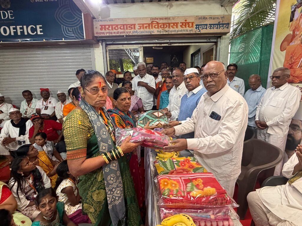 पिंपरी, (महाराष्ट्र ब्रेकिंग न्यूज) – अलिबाग ते श्री क्षेत्र नारायणपूर पायी दिंडी सोहळ्यात आलेल्या भाविकांचे मराठवाडा जनविकास संघाच्यावतीने अरुण एस. पवार आणि बालाजी एस. पवार यांच्या वतीने स्वागत करण्यात आले. यावेळी भाविकांना थंडीपासून संरक्षणासाठी ब्लॅंकेट , फळे वाटप करण्यात आले.