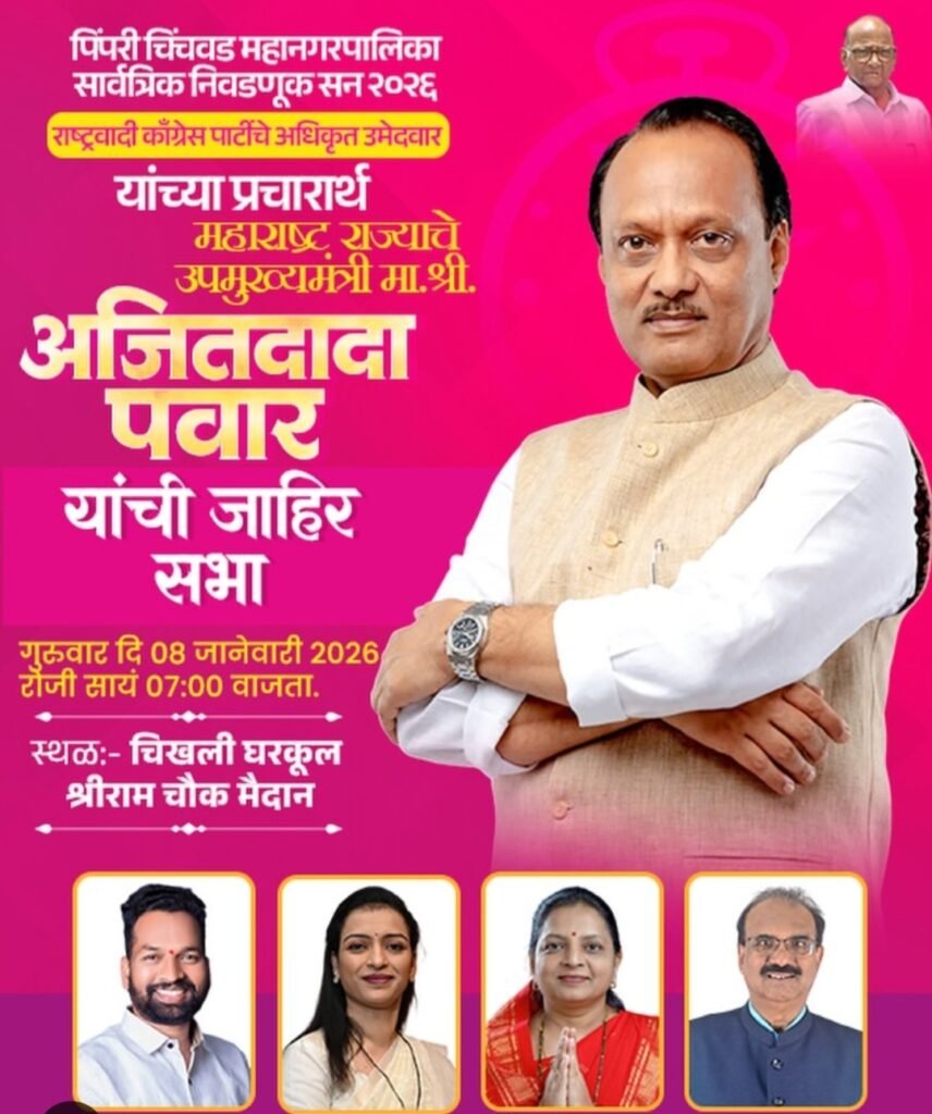 या जाहीर सभेमुळे निवडणुकीच्या प्रचाराला नवा वेग मिळणार असून, पिंपरी-चिंचवडच्या राजकारणात अजितदादांची ही उपस्थिती राजकीय शक्तिप्रदर्शन ठरण्याची चिन्हे स्पष्ट दिसत आहेत.