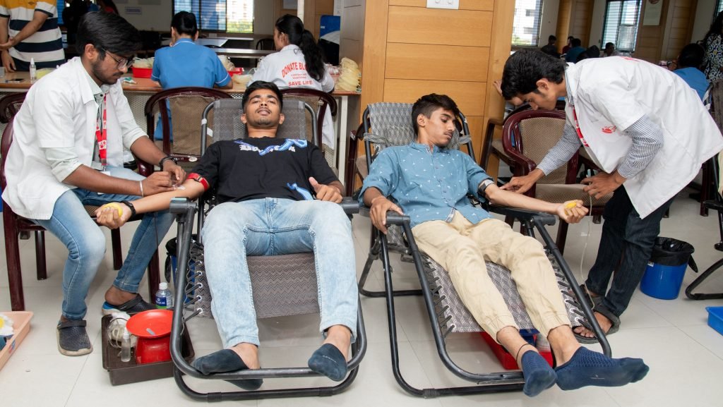 पुणे, (महाराष्ट्र ब्रेकिंग न्यूज) – एमआयटी आर्ट, डिझाईन आणि टेक्नाॅलाॅजी विद्यापीठ, पुणे विद्यापीठाचे कुलगुरू तथा कार्याध्यक्ष प्रा.डाॅ.मंगेश तु.कराड यांच्या ५८व्या वाढदिवसानिमित्त राष्ट्रीय सेवा योजना (एनएसएस) तर्फे आयोजित भव्य रक्तदान शिबिराला विद्यार्थी तसेच शिक्षक, शिक्षकेतर कर्मचाऱ्यांचा उदंड प्रतिसाद लाभला. या शिबिरात तब्बल १५८ दात्यांनी रक्तदान करून आपली सामाजिक बांधीलकी जपण्याचा प्रयत्न केला.