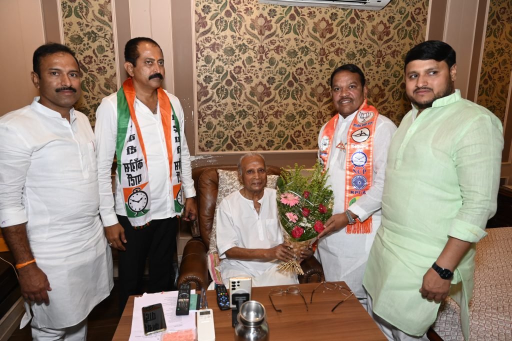 तळेगाव दाभाडे, (महाराष्ट्र ब्रेकिंग न्यूज) – पुणे जिल्ह्यातील ज्येष्ठ नेते माजी आमदार कृष्णराव भेगडे यांच्या निवासस्थानी जाऊन त्यांचे आशीर्वाद घेत मावळ लोकसभा मतदारसंघातील शिवसेना- भाजप- राष्ट्रवादी- मनसे- आरपीआय- रासप व मित्रपक्ष महायुतीचे उमेदवार खासदार श्रीरंग बारणे यांनी काल (मंगळवारी) रात्री तळेगाव दाभाडे शहरातील काही मान्यवरांची भेट घेऊन त्यांना सहकार्याचे आवाहन केले.