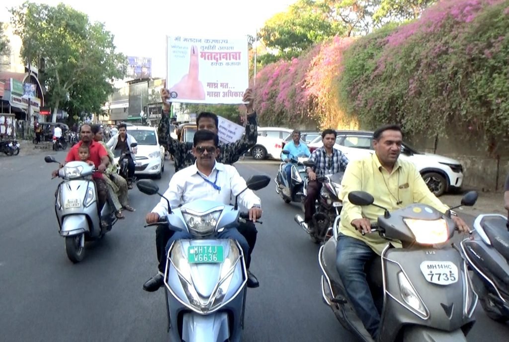 पिंपरी, (महाराष्ट्र ब्रेकिंग न्यूज) – “वोट करेंगे वोट करेंगे, तेरा मई को वोट करेंगे” अशा घोषणा देत, हातात फ्लेक्स द्वारे शहरात भव्य दुचाकी रॅलीकडून मतदान जनजागृती करण्यात आली.