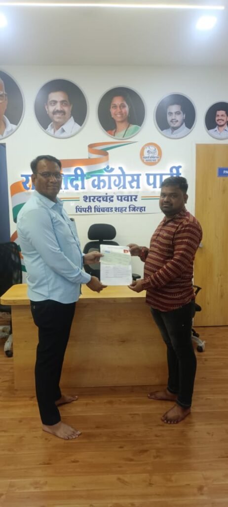 पिंपरी, (महाराष्ट्र ब्रेकिंग न्यूज ) – राष्ट्रवादी काँग्रेस पक्ष शरदचंद्र पवार पक्षाकडून येणाऱ्या २०२४ च्या विधानसभा निवडणुकीसाठी पक्ष उमेदवारी अर्ज मागवण्यात आले आहेत. हे अर्ज पिंपरी मध्यवर्ती कार्यालय येथे उपलब्ध होते. पिंपरी विधानसभेसाठी इच्छुक असलेले पक्षाचे सरचिटणीस सचिन गायकवाड यांनी पक्ष उमेदवारी अर्ज पक्षाच्या पिंपरी मध्यवर्ती कार्यालय येथे जमा केला आहे.