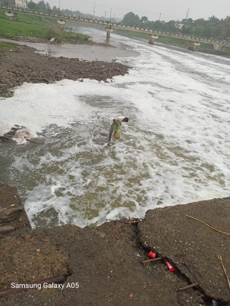 आळंदी ( महाराष्ट्र ब्रेकिंग न्यूज ) – तीर्थक्षेत्र देहू आळंदी येथून वाहणाऱ्या पवित्र इंद्रायणी नदीला नदी प्रदूषणाचे ग्रहण लागले आहे. हे ग्रहण सुटता सुटत नसल्याने भाविक नागरिकांत प्रचंड नाराजी पसरली आहे. गेल्या दोन महिन्यात अनेक वेळा नदी प्रदूषणाने नदी फेसाळली. यात पुन्हा मंगळवारी ( दि. २४ ) इंद्रायणी नदीचे प्रदूषण पाणी फेसाळलेले आल्याने प्रदूषण वाढले. यामुळे नदीचे पुलावर फेसाळलेली नदी पाहण्यासह नागरिकांनी सेल्फी घेत सोशल मीडियावर आळंदीतील नदी प्रदूषणाचा विषय ऐरणीवर आला आहे.