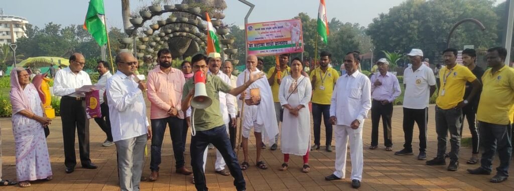 पिंपरी (महाराष्ट्र ब्रेकिंग न्यूज ) – दिलासा संस्था व मानवी हक्क आणि संरक्षण जागृती या संस्थांच्या वतीने पिंपळे गुरव येथील राजमाता जिजाऊ उद्यान येथे बुधवार, दिनांक ०२ ऑक्टोबर २०२४ रोजी महात्मा गांधी जयंतीचे औचित्य साधून ‘मी महात्मा गांधी बोलतोय!’ हे लक्षवेधी पथनाट्य सादर करण्यात आले. ८४ वर्षांचे ज्येष्ठ सामाजिक कार्यकर्ते डॉ. पी. एस. आगरवाल यांनी महात्मा गांधी यांची हुबेहूब भूमिका साकारली होती. मानवी हक्क आणि संरक्षण जागृती संस्थेचे अध्यक्ष आण्णा जोगदंड, दिलासा संस्थेचे उपाध्यक्ष सुभाष चव्हाण, संगीता जोगदंड, शब्दधन काव्यमंचाचे सदस्य कवी शामराव सरकाळे, दिलासा संस्थेचे अध्यक्ष सुरेश कंक यांनी पथनाट्यात सहभाग घेतला होता. सुभाष चव्हाण यांनी “तू हिंदू बनेगा ना मुसलमान बनेगा, इंसान की औलाद है इंसान बनेगा…” हे गीत म्हणत पथनाट्याला सुरुवात केली.