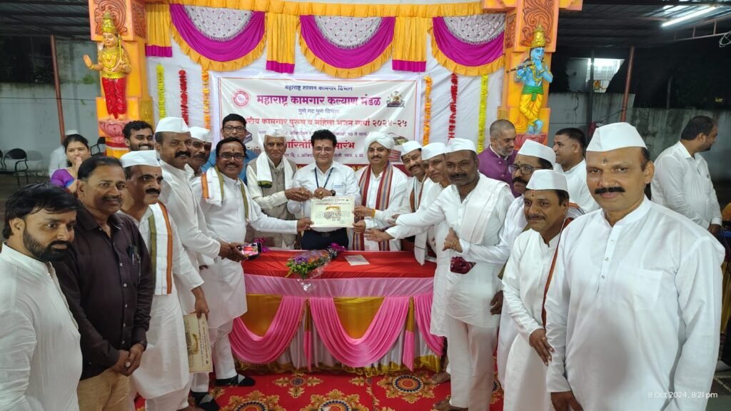 पिंपरी, (महाराष्ट्र ब्रेकिंग न्यूज ) – महाराष्ट्र कामगार कल्याण मंडळ पुणे गटाच्या वतीने राष्ट्रपिता महात्मा गांधी राष्ट्रीय सप्ताह निमित्त गटस्तरीय कामगार पुरुष भजन स्पर्धा व महिला भजन स्पर्धा दिनांक ७ व ८ ऑक्टोबर२०२४ रोजी श्री विठ्ठल रुक्मिणी मंदिर एच. ए.कॉलनी पिंपरी येथे संपन्न झाल्या.