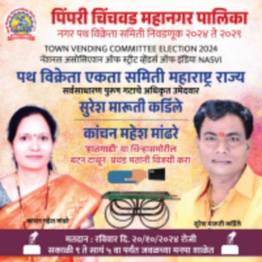 पथ विक्रेता एकता समितीच्या ‘एकता पॅनल’कडून सर्वसाधारण पुरुष गटातून सुरेश मारुती कर्डिले आणि सर्वसाधारण महिला राखीव गटातून कांचन महेश मांढरे हे निवडणुकीसाठी उभे आहेत. त्यांचा प्रचाराचा जोमात सुरु आहे. ‘हातगाडी’ या चिन्हासमोर शिक्का मारून आम्हाला निवडून द्या, असं आवाहन त्यांनी प्रसिद्धीपत्रकाद्वारे केली आहे.