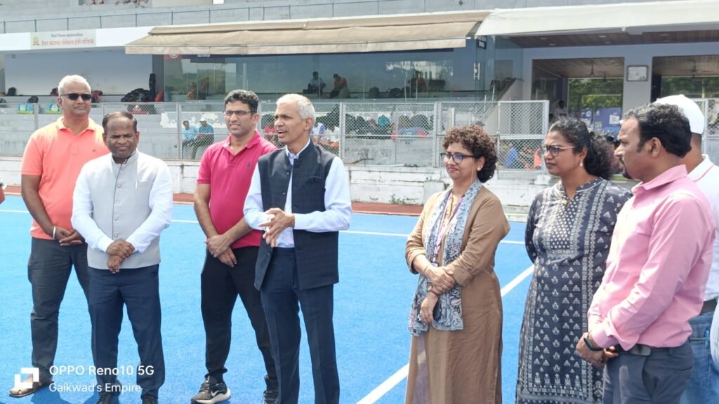 पिंपरी, (महाराष्ट्र ब्रेकिंग न्यूज ) – सावित्रीबाई फुले पुणे विद्यापीठ व पुणे जिल्हा विभागीय क्रीडा समिती अंतर्गत रयत शिक्षण संस्थेचे, महात्मा फुले महाविद्यालय, पिंपरी, पुणे-१७ पुणे यांच्या संयुक्त विद्यमाने आंतरविभागीय मुले हॉकी स्पर्धांचे आयोजन १५ आणि १६ ऑक्टोबर २०२४ रोजी मेजर ध्यानचंद हॉकी स्टेडियम, पिंपरी या ठिकाणी करण्यात आले. या स्पर्धांमध्ये चार विभागातील विविध संघाच्या माध्यमातून ७२ मुलांनी सहभाग नोंदवला. या स्पर्धांचा उद्घाटन सोहळा बुधवार दि. १५ ऑक्टोबर २०२४ रोजी दुपारी २:३० वा. वाजता मेजर ध्यानचंद हॉकी स्टेडियम, पिंपरी या ठिकाणी पार पडला. या कार्यक्रमासाठी एम. यु. वाणिज्य महाविद्यालय, पिंपरीचे शारिरीक शिक्षण संचालक प्रा. शाकुर सय्यद हे प्रमुख पाहुणे म्हणून उपस्थित होते. दुसऱ्या दिवशी सावित्रीबाई फुले पुणे विद्यापीठाचे कुलगुरू, प्रो. ( डॉ.) सुरेश गोसावी हे खेळाडूंना शुभेच्छा देण्यासाठी प्रमुख पाहुणे म्हणून उपस्थित होते. त्याचबरोबर डॉ. दीपक माने, माजी क्रीडा संचालक, सावित्रीबाई फुले पुणे विद्यापीठ; डॉ. विष्णू पेठकर, प्रभारी क्रीडा संचालक, सावित्रीबाई फुले पुणे विद्यापीठ; डॉ. रमेश गायकवाड, सिनेट सदस्य श्री किशोर घडियार, सावित्रीबाई फुले पुणे विद्यापीठ क्रीडा विभाग, इत्यादी मान्यवर उपस्थित होते.