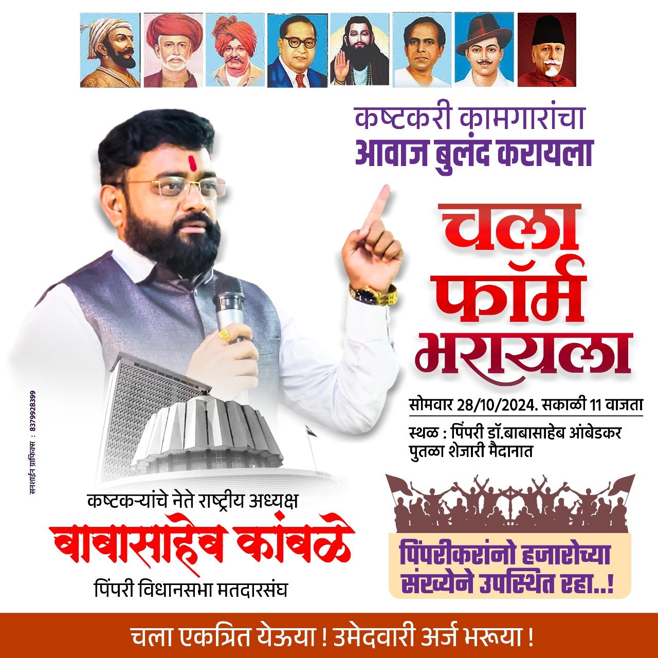 पिंपरी विधानसभेतून बाबा कांबळे अपक्ष उमेदवारी अर्ज दाखल करणार आहेत. तर चिंचवड, भोसरी, मावळ आणि खेड आळंदी तसेच इतरही मतदार संघ येथूनही संघटनेचे उमेदवार उभे करून प्रस्थापितांना आव्हान देणार आहेत. या सर्व मतदारसंघात एक लाखांपेक्षा अधिक संघटनेचे प्रतिनिधी कार्यरत आहेत.