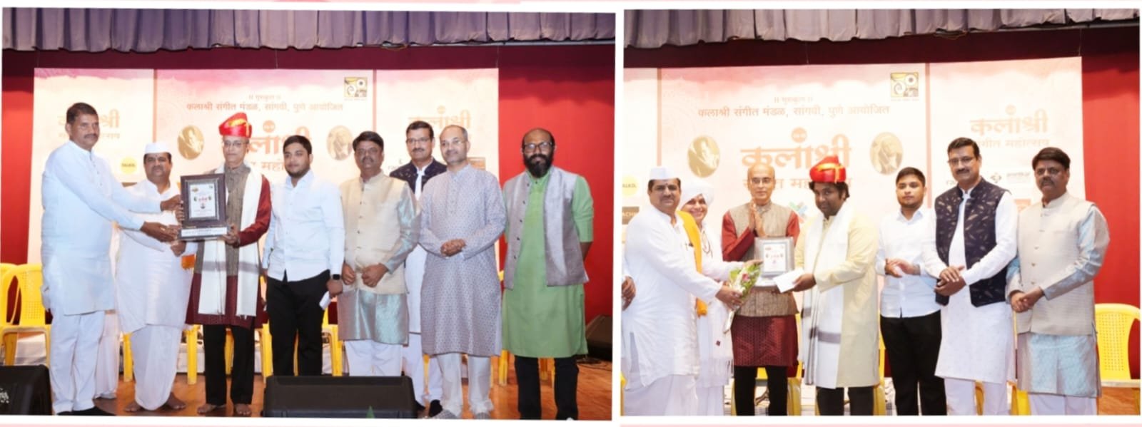 पिंपरी, (महाराष्ट्र ब्रेकिंग न्यूज ) – कलाश्री संगीत मंडळातर्फे देण्यात येणारा यंदाचा ‘कलाश्री पुरस्कार’ लोकनेते माजी आमदार स्व. लक्ष्मणभाऊ जगताप यांच्या स्मरणार्थ पंडित गिरीष संजगिरी यांना उद्योजक विजय जगताप यांच्या हस्ते प्रदान करण्यात आला. पुणेरी पगडी, एक लाख ११ हजार एकशे अकरा रुपये, सन्मानचिन्ह असे पुरस्काराचे स्वरूप होते. तसेच स्व. शंकुतला नारायण ढोरे यांच्या स्मरणार्थ ‘कलाश्री युवा पुरस्कार’ प्रसिद्ध सतार वादक पं. मोहसीन खान यांना जयवंत महाराज बोधले यांच्या हस्ते प्रदान करण्यात आला.