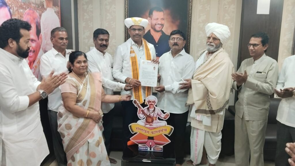 पिंपळे गुरव, (महाराष्ट्र ब्रेकिंग न्यूज ) – शब्दधन काव्यमंच ही साहित्य संस्था रौप्यमहोत्सवी वर्षात पदार्पण करीत आहे. यानिमित्त संस्थेच्या वतीने या वर्षात विविध साहित्यिक उपक्रम होणार आहेत. तसेच “शब्द हे आमुच्या जिवींचे जीवन” हे साहित्य संमेलन घेण्यात येणार आहे. या नियोजित साहित्य संमेलनाचे स्वागताध्यक्ष म्हणून चिंचवड विधानसभेचे आमदार शंकर पांडुरंग जगताप यांची संस्थेच्या वतीने एकमुखाने निवड करण्यात आली. याप्रसंगी गुरुवर्य राघवचैतन्य महाराज यांच्या हस्ते संत तुकाराम महाराज पगडी, शाल, तुकोबाराय यांची अभंगगाथा देऊन शंकर जगताप यांचा सन्मान करून त्यांना स्वागताध्यक्ष निवडीचे पत्र देण्यात आले. शब्दधन काव्यमंचाच्या बोधचिन्हाचे अनावरण शंकर जगताप आणि गुरुवर्य ह. भ. प. राघव चैतन्य महाराज यांच्या हस्ते ‘बोला पुंडलिक वरदे हरी विठ्ठल’ या घोषात करण्यात आले. याप्रसंगी ह. भ. प. अशोक महाराज गोरे, मुरलीधर दळवी, जयश्री गुमास्ते, अण्णा गुरव, शब्दधन काव्यमंचाचे अध्यक्ष सुरेश कंक, सागर आंघोळकर, सखाराम नखाते, संजय दीक्षित उपस्थित होते.