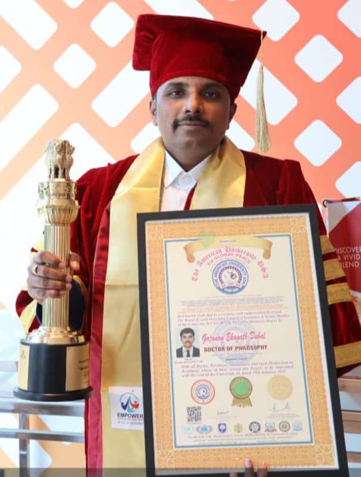 पिंपरी, (महाराष्ट्र ब्रेकिंग न्यूज ) – बांधकाम क्षेत्रातील नामांकित असे नाव असलेले पुण्यातील औटी ग्रुपमध्ये सेल्स अॅण्ड मार्केटिंग संचालक गजानन डुबल यांना अमेरिकेतील (युएसए) दी अमेरिकन युनिर्व्हसिटीकडून बहुप्रतिष्ठीत अशी पीएचडी पदवी बहाल करण्यात आली आहे. त्यांनी रिअल इस्टेट बिझनेस अॅण्ड मार्केटिंग या विषयात ही पदवी मिळविली आहे.