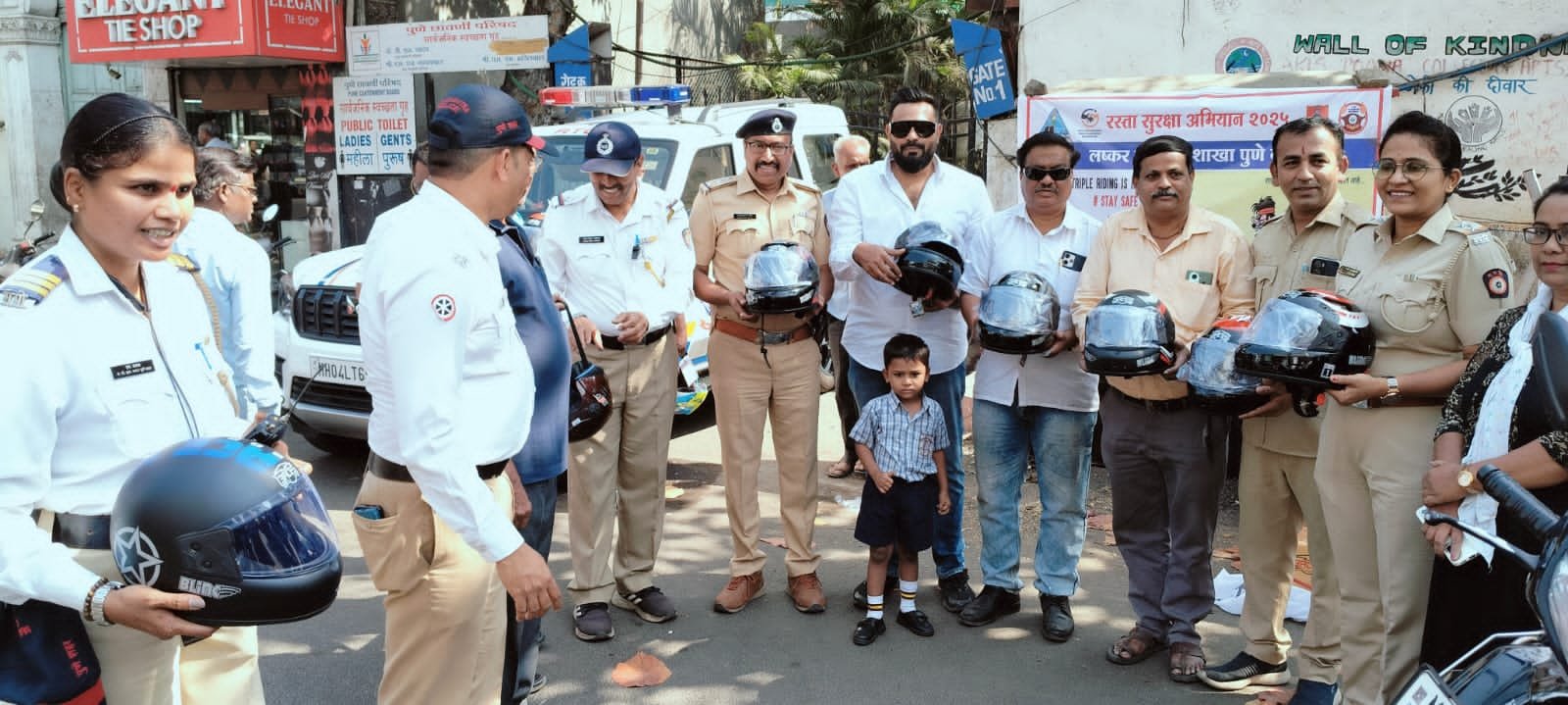 पुणे, (महाराष्ट्र ब्रेकिंग न्यूज ) – मोटार ड्रायव्हिंग स्कूल ओनर्स असोसिएशन महाराष्ट्र राज्य व प्रादेशिक परिवहन अधिकारी पुणे व वाहतूक शाखा पुणे लष्कर यांच्या संयुक्त विद्यमाने रस्ता सुरक्षा महिन्याच्या अनुषंगाने 50 महिलांसाठी व 50 पुरुषांसाठी असे एकूण शंभर हेल्मेट वाटण्यात आले.
