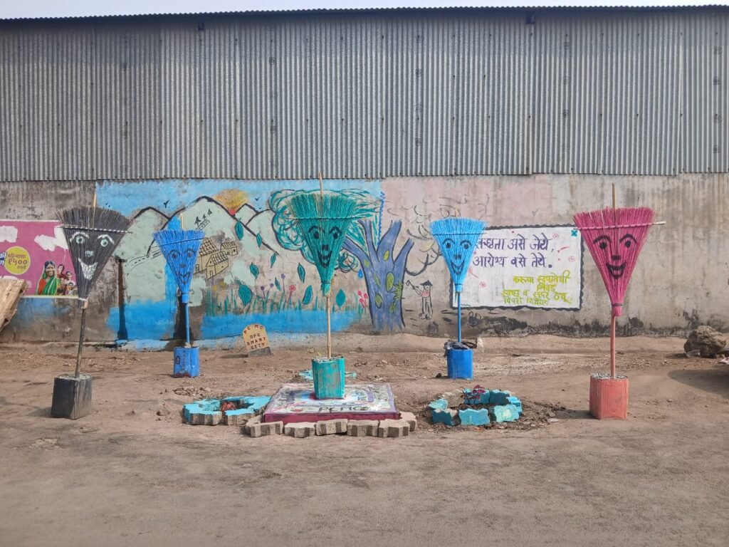 आरोग्य विभागाच्या कर्मचाऱ्यांनी या ठिकाणी स्वच्छता करून खराब झाडू, बांबूच्या काठ्या, इतर टाकाऊ वस्तू यांचा कल्पकतेने वापर करून सुंदर व सुबक कलाकृती तयार केली. त्यामुळे येथील कचऱ्याची समस्या दूर तर झाली आहेच, शिवाय येथील स्थानिक नागरिक ही जागा स्वच्छ राहील, यासाठी काळजी घेऊ लागले आहेत. ही जागा कचरामुक्त करण्यासाठी आरोग्य कर्मचाऱ्यांनी केलेल्या प्रयत्नांचे परिसरातील नागरिकांकडून कौतुक होऊ लागले आहे. ही जागा कचरामुक्त करून तेथे टाकाऊ वस्तूंपासून कलाकृती तयार करून उभारण्यासाठी महापालिका ‘अ’ क्षेत्रीय कार्यालय अंतर्गत क्षेत्रीय अधिकारी शीतल वाकडे, सहाय्यक आरोग्य अधिकारी राजू साबळे, मुख्य आरोग्य निरीक्षक दत्तात्रय गणगे व प्रभाग क्रमांक १४ चे आरोग्य निरीक्षक विकास शिंदे महापालिका अधिकारी, कर्मचारी आदींनी यासाठी विशेष परिश्रम घेतले.