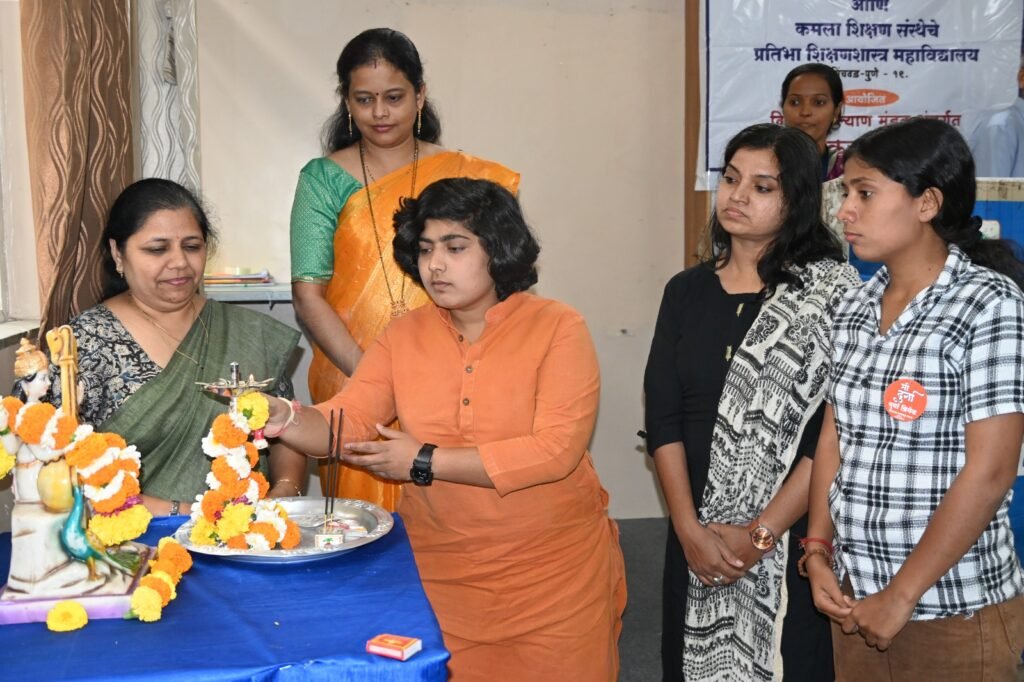 चिंचवड, (महाराष्ट्र ब्रेकिंग न्यूज ) – चिंचवड येथील कमला शिक्षण संकुल संचलित संस्थेचे संस्थापक सचिव डॉ. दीपक शहा व संस्थेच्या खजिनदार डॉ . भूपाली शहा यांच्या सुचना व मार्गदर्शनानुसार प्राचार्या डॉ. पौर्णिमा कदम यांच्या संयोजन व अध्यक्षतेखाली सावित्रीबाई फुले पुणे विद्यापीठ आणि प्रतिभा शिक्षण शास्त्र महाविद्यालयांच्या विद्यार्थी कल्याण मंडळाच्या वतीने निर्भय कन्या अभियान अंतर्गत महिलांचे स्वसंरक्षण व प्रात्यक्षिके कार्यशाळेचे उद्घाटन दुर्गा ब्रिगेड संघटनेच्या अध्यक्षा दुर्गा भोर यांच्या हस्ते दीप प्रज्वलन करून करण्यात आले यावेळी संघटनेच्या कायदेशीर सल्लागार अँड. मोहिनी सूर्यवंशी, इंडस्ट्रीज असोसिएशनचे अध्यक्ष अभय भोर , महाविद्यालयाच्या प्राचार्या डॉ. पौर्णिमा कदम, विद्यार्थी कल्याण मंडळाच्या प्रमुख प्रा. गीता कांबळे, अवंतिका भोर आदी उपस्थित होते.