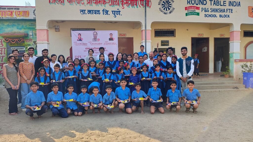 डॉ. डी. वाय. पाटील बायोटेक्नाॅलाॅजी व बायोइन्फर्मेटिक्स काॅलेजच्या एन.एस.एस. वतीने कुसगाव शाळेतील विद्यार्थ्यांना शैक्षणिक साहित्याचे वाटप