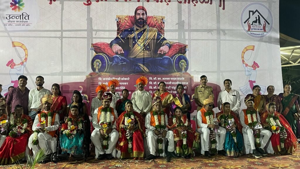 पिंपळे सौदागर,(महाराष्ट्र ब्रेकिंग न्यूज)- पिंपरी चिंचवड शहरातील विविध सामाजिक कामांसाठी प्रसिद्ध असलेल्या , उन्नती सोशल फाऊंडेशन आणि दिव्यांग बांधवांसाठी कार्यरत असणाऱ्या झुंज दिव्यांग संस्था यांच्या संयुक्त विद्यमाने युगप्रवर्तक छत्रपती शिवाजी महाराज यांच्या जयंतीनिमित्त ०६ दिव्यांग वधू-वरांच्या मोफत सामुदायिक विवाह सोहळा लिनिअर गार्डन गोविंद यशोदा चौक , पिंपळे सौदागर येथे मोठ्या उत्साहात संपन्न झाला. यंदाचे या विवाह सोहळ्याचे २ रे वर्ष होते.