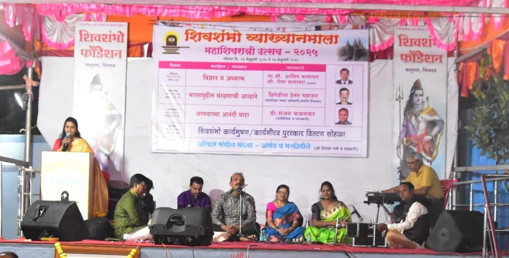 पिंपरी, (महाराष्ट्र ब्रेकिंग न्यूज) – शिवशंभो फाउंडेशन आयोजित पाच दिवसीय महाशिवरात्री महोत्सव २०२५ची सांगता शिवमंदिर प्रांगण, शाहूनगर, चिंचवड येथे दिगंबर राणे आणि सहकारी प्रस्तुत ओंकार संगीत संध्या या भक्तिसंगीताच्या मैफलीने गुरुवार, दिनांक २७ फेब्रुवारी २०२५ रोजी करण्यात आली.