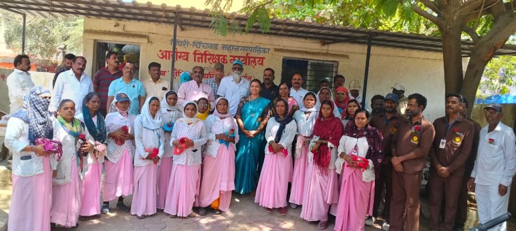 पिंपरी, (महाराष्ट्र ब्रेकिंग न्यूज) – शिवसेना रहाटणी काळेवाडी आयोजित जागतिक महिला दिनानिमित्त काळेवाडी परिसरातील महानगर पालिकेच्या २५ महिला आरोग्य सफाई कर्मचारी यांचा शाल श्रीफळ पुष्पगुच्छ व उन्हापासून संरक्षण करण्यासाठी सर्व महिलांना दुपट्टा देऊन यथोचित असा सन्मान करण्यात आला.