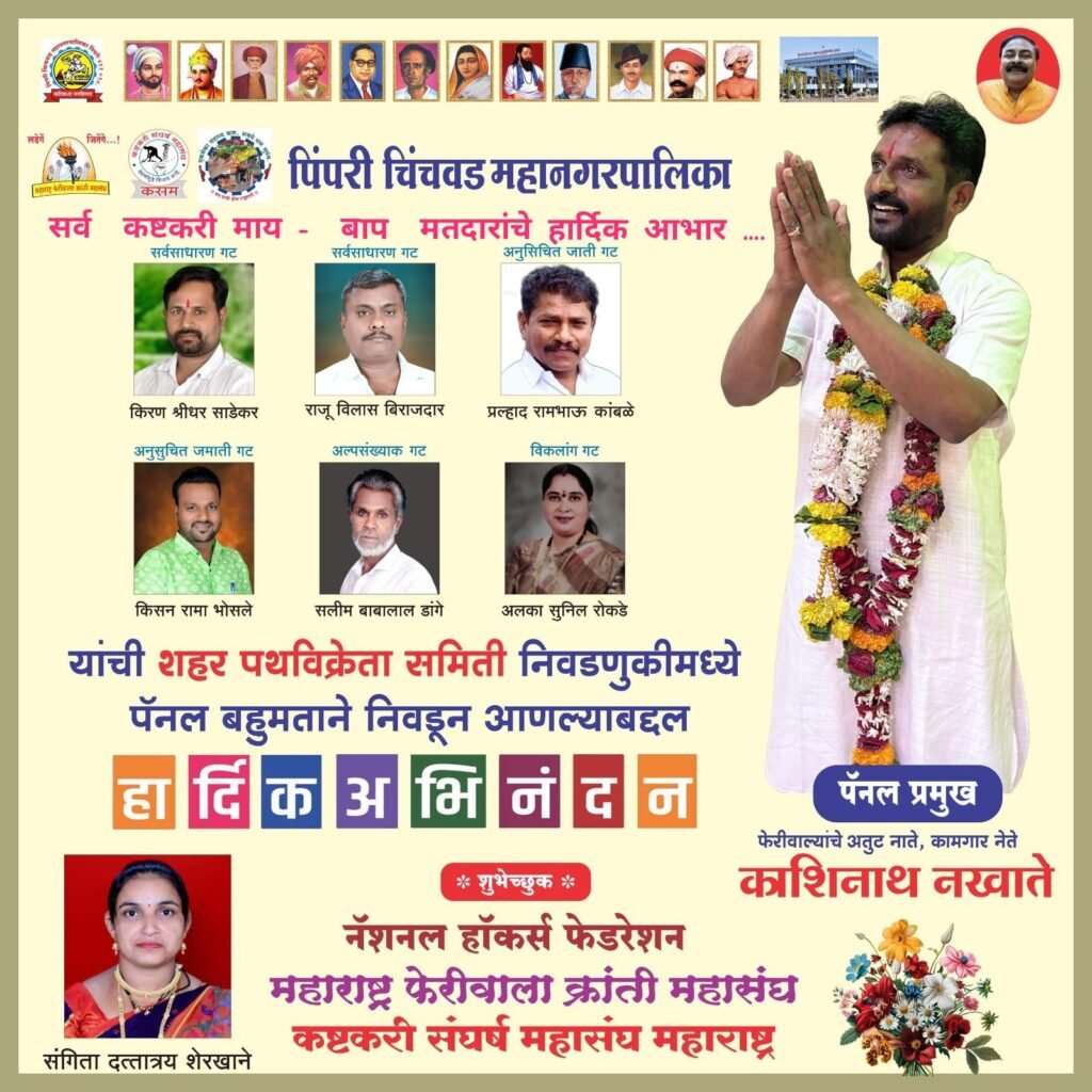 पिंपरी, (महाराष्ट्र ब्रेकिंग न्यूज) – पिंपरी चिंचवड महानगरपालिका क्षेत्रामध्ये महाराष्ट्र फेरीवाला क्रांती महासंघाच्या माध्यमातून शहरातील अनेक विक्रेत्यांच्या न्याय देऊन हॉकर झोन, फेरीवाला प्रमाणपत्र वाटप, इत्यादी बाबी करण्यात यश आलेले असून महानगरपालिका अन्यायकारक कारवाई करत आहे म्हणून मा. सर्वोच्च न्यायालयामध्ये आम्ही गेलो असता सर्वोच्च न्यायालयाने स्थगिती दिली हे सर्व जगाला माहित आहे परंतु अज्ञानी लोकांना अजून काय स्थगिती असते ? काय निर्णय असतो हेच माहीत नाही या उलट ते समजून न घेता सर्वसामान्य गोरगरीब फेरीवाल्यांना मिळालेला न्याय त्यांच्या पचनी पडलेला नाही म्हणून विजयी गुलाल उधळणाऱ्या फेरीवाल्यांचा आनंद पाहून त्यांची पोटदुखी सुरू झालेली असून शहरातील फेरीवाले त्यांना चांगलेच ओळखून आहेत त्यांनी आता तरी चांगले विचार करावेत असा टोला महाराष्ट्र फेरीवाला क्रांती महासंघाने दिला आहे.