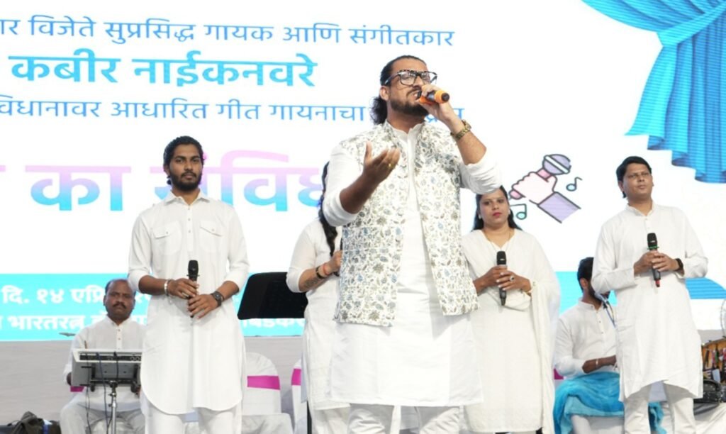 यानंतर आंतरराष्ट्रीय पुरस्कार विजेते सुप्रसिद्ध गायक-संगीतकार कबीर नाईकनवरे यांच्या संविधानविषयक गीतगायनाने वातावरण भारावून टाकले. “ये मेरा संविधान”, “संविधान समजूनी”, “लिहिली घटना”, “संविधान देशाचा प्राण आहे” अशा गीतांमधून त्यांनी प्रेक्षकांना संविधानाचे मर्म आणि डॉ. बाबासाहेब आंबेडकरांची दूरदृष्टी समजावून सांगितली. कार्यक्रमास उपस्थित प्रेक्षकांचा प्रचंड प्रतिसाद लाभला.