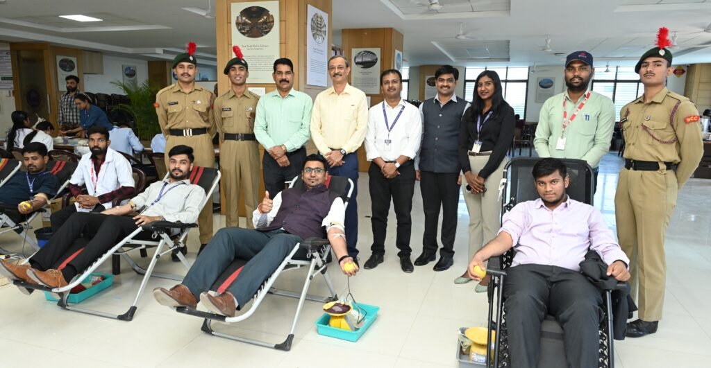 पुणे, (महाराष्ट्र ब्रेकिंग न्यूज) – एमआयटी आर्ट, डिझाईन आणि टेक्नाॅलाॅजी विद्यापीठ, पुणे विद्यापीठाचे कार्याध्यक्ष प्रा.डाॅ.मंगेश तु.कराड यांच्या ५९व्या वाढदिवसानिमित्त राष्ट्रीय सेवा योजना (एनएसएस) तर्फे आयोजित भव्य रक्तदान शिबिराला विद्यार्थी तसेच शिक्षक, शिक्षकेतर कर्मचाऱ्यांचा उदंड प्रतिसाद लाभला. या शिबिरात तब्बल १११ दात्यांनी रक्तदान करून आपली सामाजिक बांधीलकी जपण्याचा प्रयत्न केला.