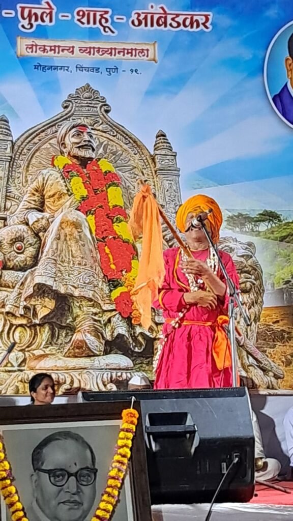 पिंपरी (महाराष्ट्र ब्रेकिंग न्यूज) – ‘भारूड म्हणजे बहुरूढींचे दर्शन होय!’ असे प्रतिपादन भारुडसम्राट ह. भ. प. लक्ष्मणमहाराज राजगुरू यांनी चिंचवड येथे केले. जय भवानी तरुण मंडळ आयोजित सहा दिवसीय शिव – फुले – शाहू – आंबेडकर – लोकमान्य व्याख्यानमालेत ‘अरे अरे माणसा तू कधी होशील रे माणूस? जगण्याचे अंतिम सत्य!’ या विषयावरील अंतिम पुष्प गुंफताना बहुरंगी, बहूढंगी भारुडांचे सादरीकरण करीत त्यांनी श्रोत्यांना हसवत हसवत अंतर्मुख केले. यावेळी विधानपरिषद आमदार उमा खापरे, अमित गोरखे, माजी नगरसेविका ॲड. वैशाली काळभोर, माजी नगरसेवक प्रमोद कुटे, अजित गव्हाणे, शीतल शिंदे, सामाजिक कार्यकर्ते मानव कांबळे, महेश कुलकर्णी, राजाभाऊ गोलांडे, रवींद्र नामदे, विशाल काळभोर, नेताजी शिंदे, संदीप म्हेत्रे, नामदेव ढाके, अनिल कुंकूलोळ, मुख्य संयोजक मारुती भापकर आदी मान्यवरांची प्रमुख उपस्थिती होती. प्रमोद कुटे यांनी, ‘समाजात स्वार्थाच्या पलीकडे जाऊन कार्य करणारे कार्यकर्ते दुर्मीळ झालेले असताना सुमारे पंचवीस वर्षांपासून जय भवानी तरुण मंडळाच्या माध्यमातून सामाजिक कार्य अविरतपणे सुरू आहे. मंडळाच्या वतीने आयोजित करण्यात येणाऱ्या व्याख्यानमालेत महाराष्ट्र आणि महाराष्ट्राबाहेरील अनेक विचारवंतांनी आजतागायत प्रबोधनात्मक योगदान दिलेले आहे!’ असे गौरवोद्गार काढले.
