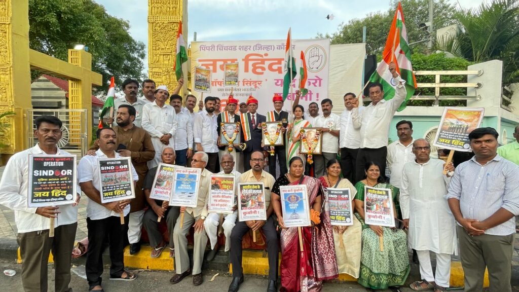 पिंपरी, (महाराष्ट्र ब्रेकिंग न्यूज) – ऑपरेशन सिंदूरमधील जवानांना अभिवादन करण्यासाठी काल (दि. २१ मे) रोजी पिंपरी चिंचवड शहर काँग्रेसच्या वतीने शहराध्यक्ष डॉ. कैलास कदम यांच्या नेतृत्वात गोकुळ हॉटेल ते पिंपरी चौक येथे तिरंगा यात्रा काढण्यात आली. महाराष्ट्र प्रदेश काँग्रेस कमिटीच्या वतीने राज्यभर तिरंगा यात्रेचे आयोजन केले होते. जय जवान जय किसान, भारत माता की जय, वंदे मातरम, सेना हमारी शान है किसान हमारी जान है, अशा घोषणा देऊन सैनिकांच्या शौर्याचं स्मरण करत यात्रेचा समारोप भारतरत्न डॉ.बाबासाहेब आंबेडकर स्मारक, पिंपरी चौक येथे करण्यात आला.