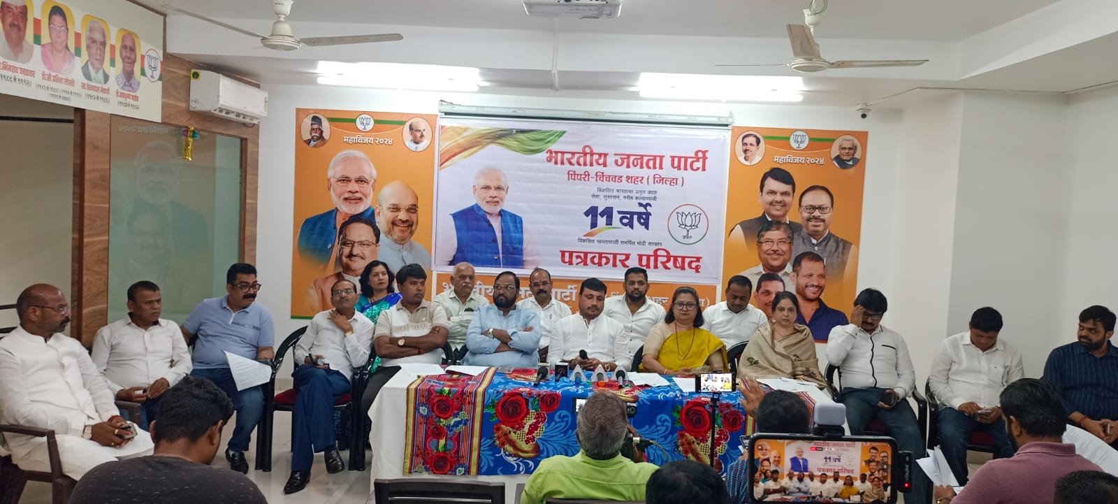 पंतप्रधान नरेंद्र मोदी यांच्या नेतृत्वाखालील केंद्र सरकारने ११ वर्षांचा कार्यकाळ यशस्वीरित्या पूर्ण केल्याबद्दल पिंपरी-चिंचवड शहर भाजपने मोरवाडी, पिंपरी येथील मध्यवर्ती कार्यालयात पत्रकार परिषद आयोजित केली होती.