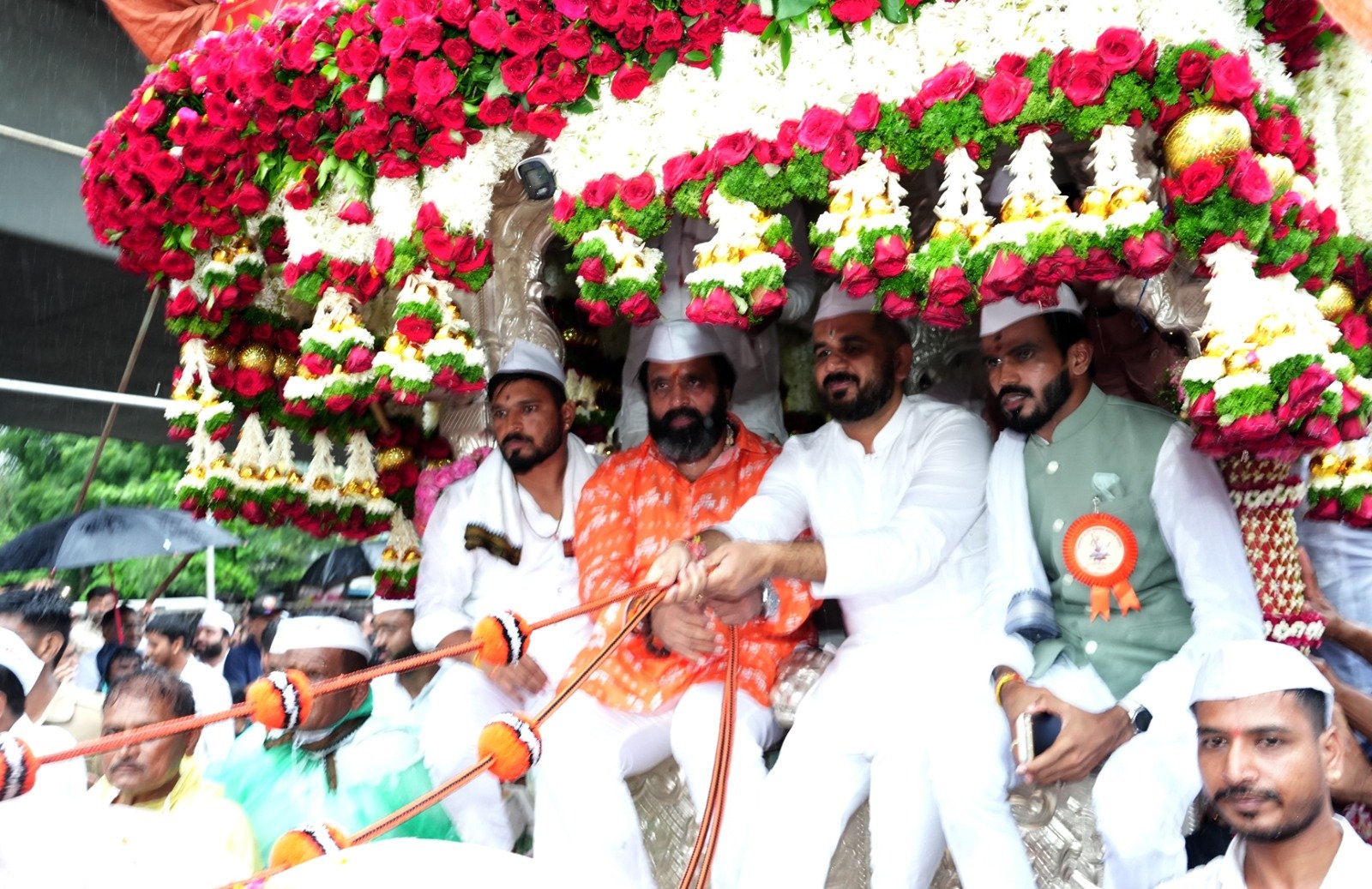 पिंपरी, (महाराष्ट्र ब्रेकिंग न्यूज)- ज्ञानोबा-तुकाराम या जयघोषात, रिमझीम पावसात पंढरपूरच्या दिशेने हरिनामाचा गजर करत मार्गस्थ झालेल्या जगद्गुरु संत तुकाराम महाराज आषाढी वारी पालखी सोहळ्याचे शहरात आगमन झाले आणि पिंपरी चिंचवड नगरी भक्तीभावात मग्न झाली. अखंड हरिनामाच्या गजरात निघालेल्या या दिंडीचे निगडी येथील भक्ती शक्ती चौकात पिंपरी चिंचवड महापालिकेच्या वतीने आयुक्त शेखर सिंह यांनी स्वागत केले. त्यानंतर आमदार महेश लांडगे व आयुक्त सिंह यांनी जगद्गुरू संत तुकाराम महाराज पालखी रथाचे सारथ्य केले.