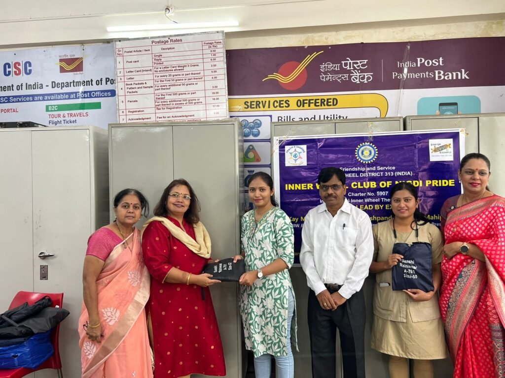 पिंपरी, (महाराष्ट्र ब्रेकिंग न्यूज) – औंध,पुणे येथील टपाल कर्मचाऱ्यांसाठी इनरव्हील क्लब ऑफ निगडी प्राइड या संस्थेने रेनकोटचे वाटप केले .