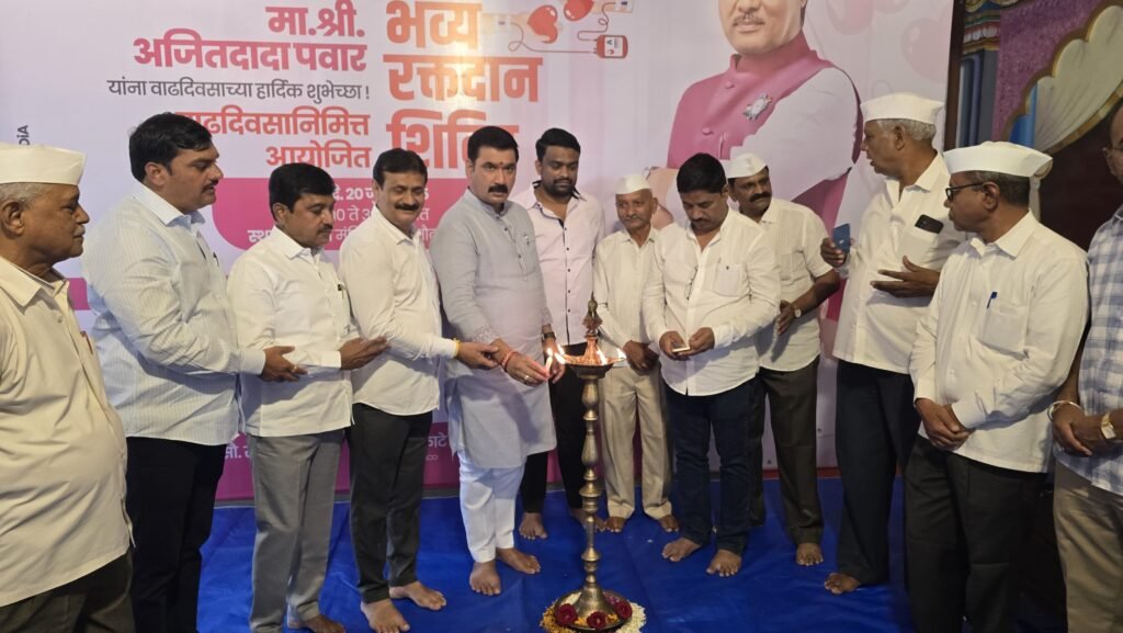 पिंपरी, (महाराष्ट्र ब्रेकिंग न्यूज) – उपमुख्यमंत्री अजित पवार यांच्या वाढदिवसानिमित्त पक्षातर्फे २२ जुलै ते ३० जुलै दरम्यान वाढदिवस जनविश्वास सप्ताह साजरे करण्याचे ठरविले असुन त्या धोरणानुसार माजी विरोधी पक्षनेते विठ्ठल उर्फ नाना काटे यांच्या मार्गदर्शनाखाली चिंचवड विधानसभा मतदार संघात विविध ठिकाणी भव्य रक्तदान शिबिराचे आयोजन करण्यात आले होते. यावेळी जास्तीत जास्त नागरिकांनी रक्तदान करावे म्हणून नागरिकांना रक्तदान म्हणजे जीवन दान आहे.आपण रक्तदान करून आपली सामाजिक जबाबदारी पार पाडावी.अशा प्रकारचे आयोजकांकडून आवाहन करून रक्तदात्यांना रक्तदान करण्यासाठी विनंती करण्यात आली. चिचवड मतदार संघात विविध ठिकाणी फलक लावून सोशल मिडीया व विविध समाज माध्यम मार्फत रक्तदात्यांना या शिबिराची माहिती देण्यात आली होती.