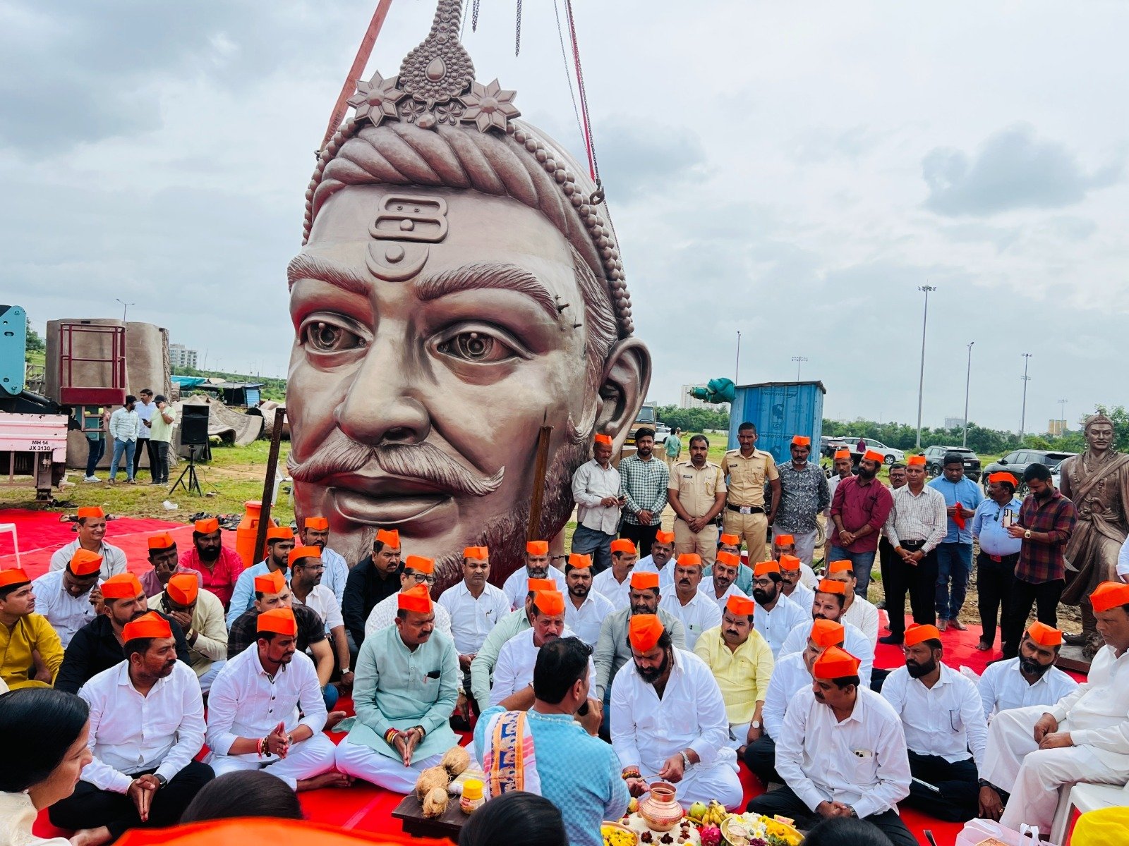 भाजपा आमदार महेश लांडगे यांच्या संकल्पनेतून मोशी-बोऱ्हाडेवाडी येथे जगातील सर्वांत उंच ‘‘स्टॅच्यू ऑफ हिंदूभूषण’’ उभारण्याचे काम प्रगतीपथावर आहे. त्याग, समर्पण आणि बलिदानाची प्रेरणा असलेल्या या पुतळ्याची उंची १४० फूट असून, चौथऱ्याची उंची ४० फूट आहे. या पुतळ्याच्या मुकूट पुजनासाठी शिव-शंभुप्रेमींनी गर्दी केली होती.