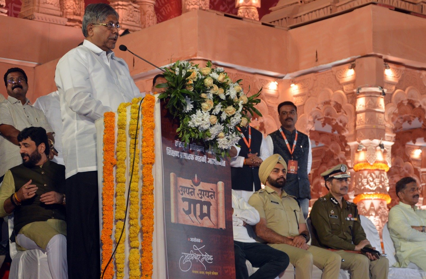 संस्कृती प्रतिष्ठान आणि शिक्षण प्रसारक मंडळीतर्फे (शि. प्र.) आयोजित डॉ. कुमार विश्वास यांच्या अमोघ वाणीतील ‘अपने अपने राम’ या तीन दिवसीय विशेष कार्यक्रमात चंद्रकांत पाटील बोलत होते. टिळक रस्त्यावरील एसपी कॉलेजच्या मैदानावर उभारलेल्या भव्य रामनगरीमध्ये अयोध्येतील राममंदिराच्या प्रतिकृतीच्या साक्षीने होत असलेल्या या कार्यक्रमावेळी आमदार भीमराव तापकीर, पुण्याचे पोलीस आयुक्त रितेश कुमार, पोलीस उपायुक्त संदीप सिंह गिल, अभिनेता क्षितिज दाते, रमेश परदेशी संगीतकार डॉ. सलील कुलकर्णी, विनोद सातव, सुभाष नाणेकर, हेमंत रासने, संस्कृती प्रतिष्ठानचे संस्थापक माजी महापौर, भारतीय जनता पक्षाचे प्रदेश सरचिटणीस मुरलीधर मोहोळ आदी उपस्थित होते.