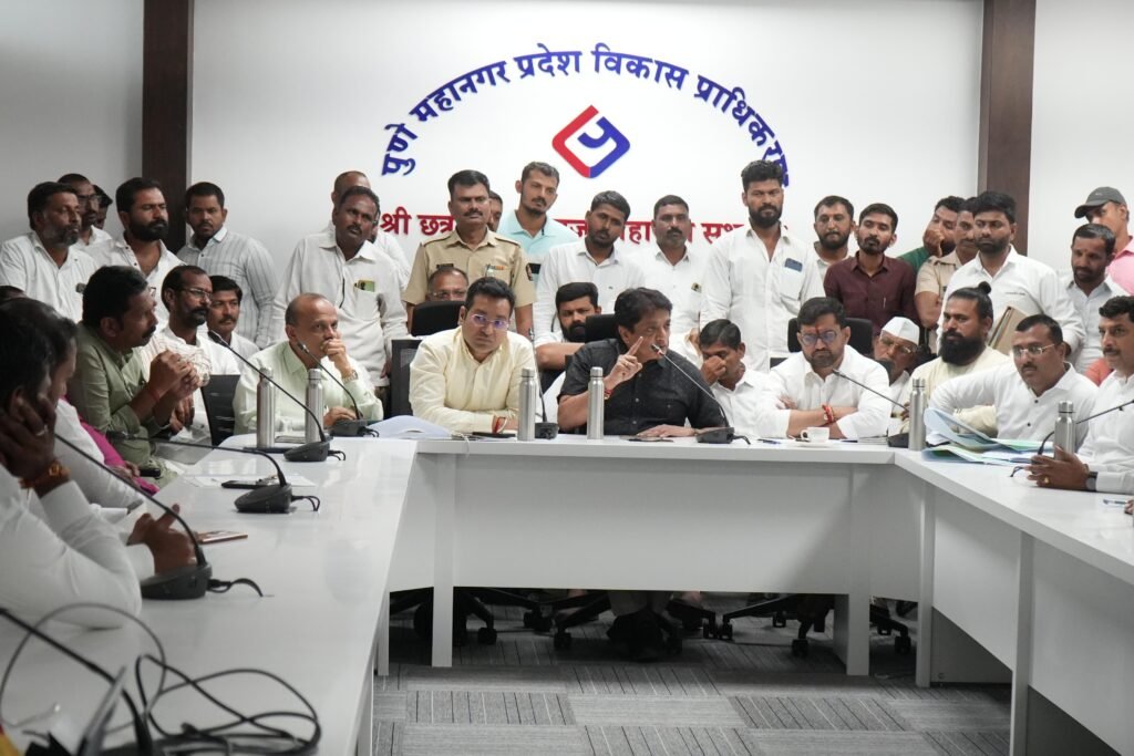 पिंपरी,(महाराष्ट्र ब्रेकिंग न्यूज) – पुणे महानगर प्रदेश विकास प्राधिकरण हद्दीतील ६५.०० मी. रुंद बाह्यवळण रस्त्यांचे क्षेत्र मिळण्यासाठी नव्याने नगर रचना योजना कार्यान्वित करण्यासाठी मान्यता दिली आहे. त्यानुसार धामणे, गोदुंबरे, दारूंबरे, साळुंब्रे, सांगवडे या गावांमधील प्रस्तावित नगर रचना योजनेबाबतच्या तरतुदींची माहिती देणे, धोरणात्मक बाबी समजावून सांगणे, नगर रचना योजनेच्या इराद्याबाबत, क्षेत्राबाबत व नकाशाबाबत माहिती देण्यासाठी गुरुवारी (दि.१४) प्राधिकरण कार्यालयात शेतकऱ्यांची बैठक घेण्यात आली. या योजनेमध्ये कुठल्याही शेतकऱ्यांचे भूसंपादन करण्यापूर्वी त्यांच्या शंकांचे निरसन आणि समन्वयातूनच पुढील प्रक्रिया राबवणार असल्याची ग्वाही महानगर आयुक्त डॉ. योगेश म्हसे यांनी दिली. नव्याने मंजूर झालेल्या टीपी स्कीमच्या अंमलबजावणीसंदर्भात आमदार सुनील शेळके यांच्या उपस्थितीत मावळ तालुक्यातील शेतकऱ्यांची बैठक घेण्यात आली, यावेळी महानगर आयुक्त बोलत होते.
