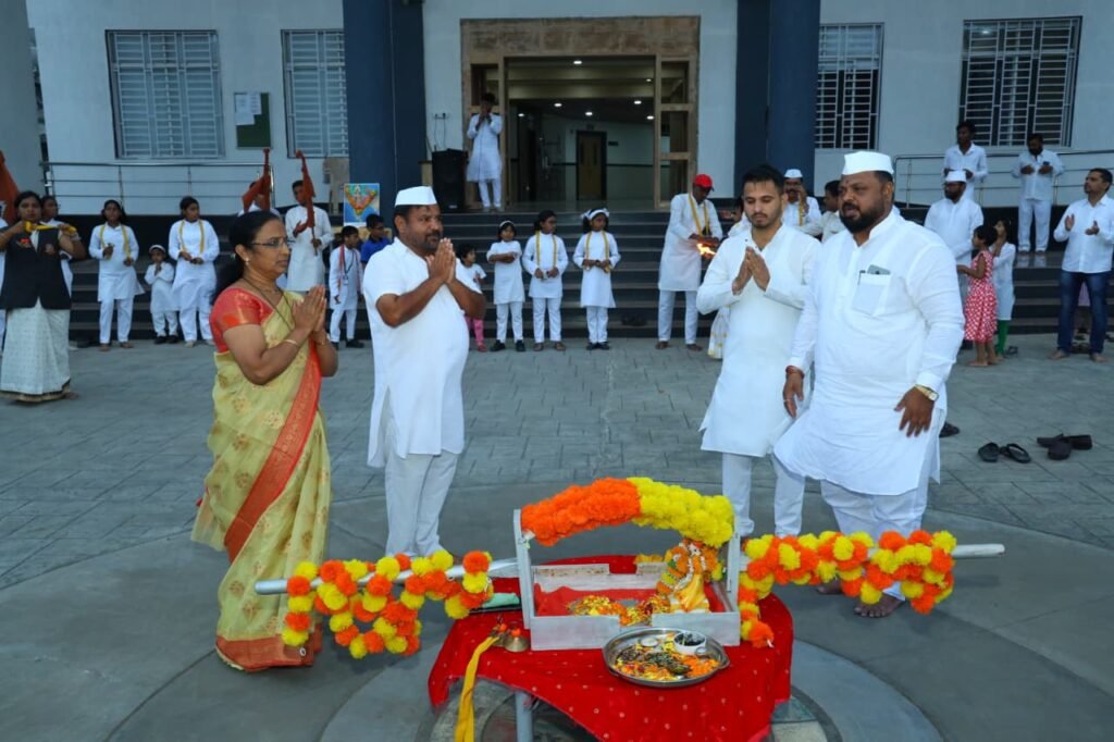 पिंपरी,(महाराष्ट्र ब्रेकिंग न्यूज) – संतश्रेष्ठ श्री ज्ञानेश्वर महाराज यांच्या सप्तशतकोत्तर सुवर्णमहोत्सवी (७५० वी) जयंती वर्षानिमित्त पिंपरी चिंचवड महापालिकेच्या जगद्गुरु संत तुकाराम महाराज संतपीठ शाळेत भक्तिमय वातावरणात भव्य पालखी मिरवणूक सोहळा संपन्न झाला.