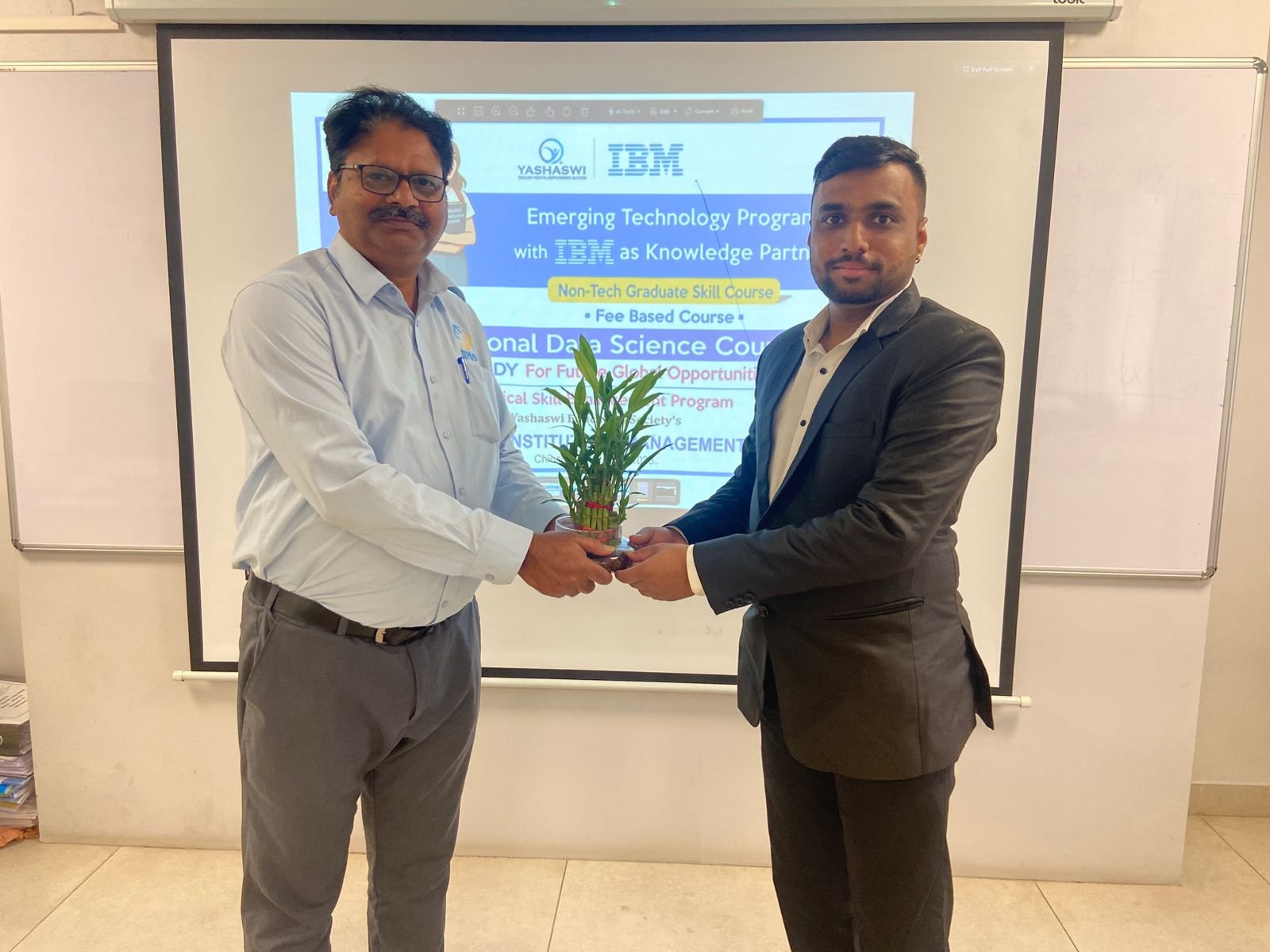 यामध्ये नवीन राष्ट्रीय शैक्षणिक धोरणाला अनुकूल असलेल्या कृत्रिम बुद्धिमत्ता, मशीन लर्निंग आधारित डेटा सायन्सच्या विविध आधुनिक प्रगत तंत्रज्ञानाचे प्रशिक्षण देण्यात येणार आहे. यावेळी आयबीएमचे प्रशिक्षक साहिल टोंगळे यांनी विद्यार्थ्यांना कृत्रिम बुद्धिमत्ता क्षेत्रातील करिअरच्या संधींबद्दल मार्गदर्शन केले.