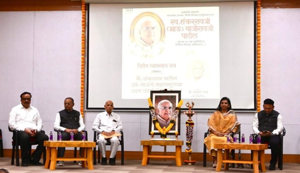 पिंपरी चिंचवड एज्युकेशन ट्रस्टचे (पीसीईटी) संस्थापक अध्यक्ष स्व. शंकरराव बाजीराव पाटील यांच्या १९ व्या स्मृतिदिनानिमित्त शनिवारी (१३ सप्टेंबर) पीसीईटीच्या निगडी येथील सभागृहात मधूकर भावे यांचे “भाऊंचे महाराष्ट्राच्या जडणघडणीत योगदान” या विषयावर व्याख्यान आयोजित करण्यात आले होते. यावेळी पीसीईटीच्या उपाध्यक्षा पद्माताई भोसले, सचिव विठ्ठल काळभोर, कार्यकारी संचालक डॉ. गिरीश देसाई, पीसीयु अभ्यास मंडळाचे सदस्य सचिन इटकर उपस्थित होते.