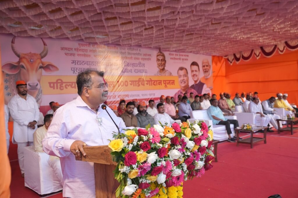 हिंदूभूषण स्मारक ट्रस्टचे अध्यक्ष तथा भाजपा आमदार महेश लांडगे यांच्या पुढाकाराने मराठवाडा आणि सोलापूरसह अन्य जिल्ह्यातील पूरग्रस्त शेतकऱ्यांमधील गरजवंतांना पहिल्या टप्प्यात १०६ गायींचे दान करण्यात आले. त्यासाठी आयोजित केलेल्या गोपूजन सोहळ्यात प्रदेशाध्यक्ष चव्हाण बोलत होते.