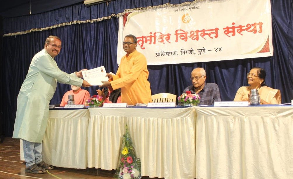 निगडी प्राधिकरण येथील ज्ञानप्रबोधिनी मधील मनोहर सभागृह मातृमंदिर विश्वस्त संस्था आयोजित संत साहित्य पुरस्कार वितरण सोहळ्यात ते बोलत होते. व्यासपीठावर अध्यक्ष नितीन भाई कारिआ, कार्यवाह डॉ. मनोज देवळेकर, उपाध्यक्षा शारदा चोरडिया, उपक्रम संयोजक सुधीर कुलकर्णी, सुभाष देशपांडे उपस्थित होते.