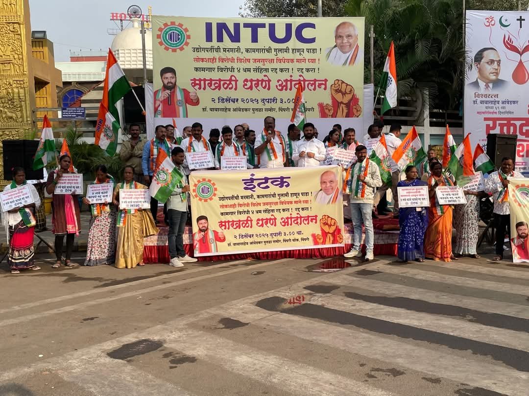 पिंपरी, (महाराष्ट्र ब्रेकिंग न्यूज) – देशातील कामगारांच्या मूलभूत हक्कांवर गदा आणणारे केंद्र सरकारचे नवे ४ कामगार कायदे (Labour Codes) तात्काळ रद्द करण्यात यावेत, अशी ठाम मागणी इंटकचे प्रदेशाध्यक्ष डॉ. कैलास कदम यांनी पिंपरी चौक येथे झालेल्या साखळी आंदोलनादरम्यान केली. या कायद्यांमुळे रोजगार सुरक्षा, वेतन संरक्षण, आरोग्य–सुरक्षा आणि संघटन स्वातंत्र्य धोक्यात येत असल्याचा आरोप इंटकतर्फे करण्यात आला.