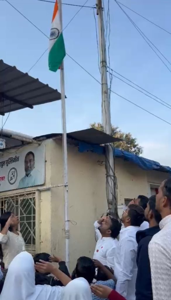 ऑल इंडिया मजलिस ए इत्तेहादुल मुस्लिमीन म्हणजेच AIMIM पक्ष पिंपरी चिंचवड शहराच्या वतीने खराळवाडी येथील पक्ष कार्यालयावर महाराष्ट्र महासचिव अकील मुजावर व शहराध्यक्ष धम्मराज साळवे यांच्या हस्ते ध्वजारोहण करण्यात आले. यावेळी राष्ट्रगीतं व भारतीय संविधानाच्या प्रास्ताविकेचे वाचन करून राष्ट्रध्वजाला सलामी देण्यात आली. तसेच यावेळी लहान मुलांना खाऊ वाटप करण्यात आला .