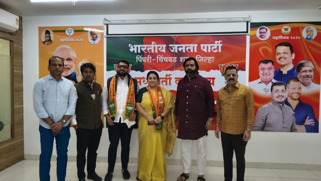 पिंपरी, (महाराष्ट्र ब्रेकिंग न्यूज) – पिंपरी-चिंचवड महानगरपालिका प्रभाग क्रमांक 3 मधील राष्ट्रवादीच्या माजी नगरसेविका विनया तापकीर आणि प्रभावशाली सामाजिक कार्यकर्ते प्रदीप तापकीर यांनी भाजपा आमदार महेश लांडगे यांच्या नेतृत्त्वात भारतीय जनता पार्टीत अधिकृत प्रवेश केला. राष्ट्रवादी काँग्रेस अजित पवार गटाला हा मोठा धक्का मानला जात आहे.