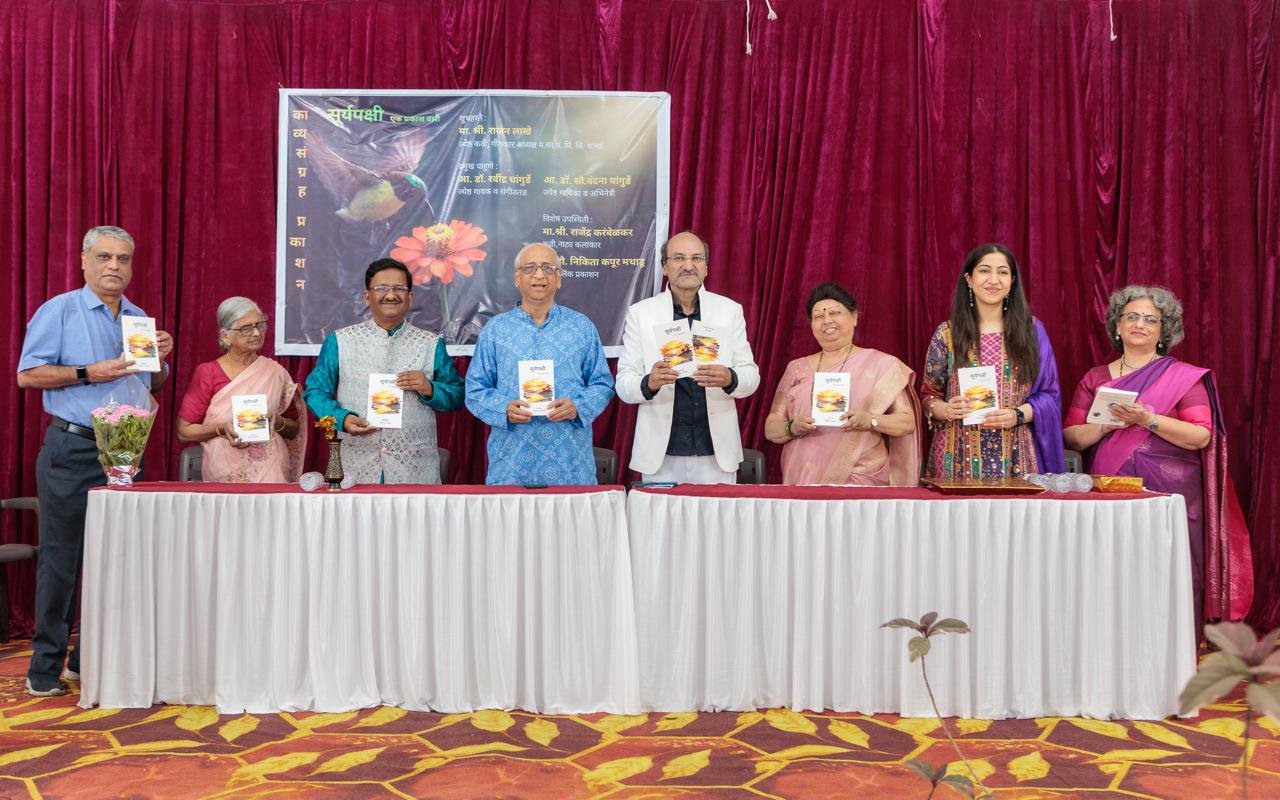 कवी नितीन कुलकर्णी उर्फ सुमतीसुत लिखित आणि पीच ब्लिंक प्रकाशननिर्मित ‘सूर्यपक्षी – एक प्रकाशवारी’ या काव्यसंग्रहाचे प्रकाशन करताना राजन लाखे बोलत होते. ज्येष्ठ शास्त्रीय गायक डॉ. रवींद्र घांगुर्डे, ज्येष्ठ शास्त्रीय गायिका डाॅ. वंदना घांगुर्डे, ज्येष्ठ रंगकर्मी राजेंद्र करंबेळकर, ज्येष्ठ कवयित्री सुमती कुलकर्णी, प्रकाशिका निकिता कपूर – मथाडू आणि कवी नितीन कुलकर्णी यांची व्यासपीठावर प्रमुख उपस्थिती होती.