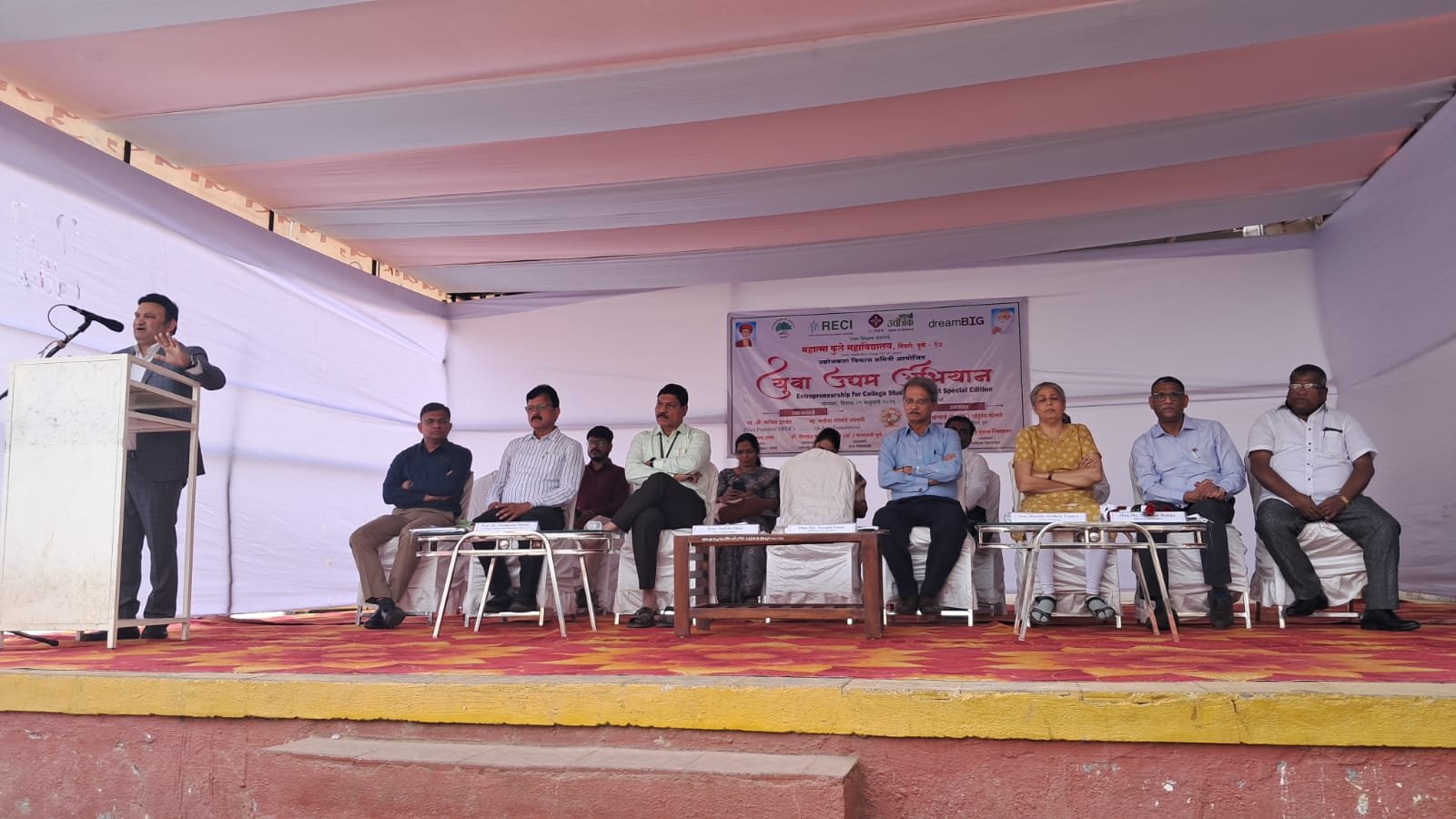 महाविद्यालयीन विद्यार्थ्यांसाठी आयोजित केलेल्या युवा उद्यम अभियान उपक्रमात विद्यार्थ्यांना मार्गदर्शन करताना सचिन ईटकर बोलत होते. प्राचार्य डॉ. पांडुरंग भोसले अध्यक्षस्थानी होते; तसेच दे आसरा फाउंडेशनच्या मनीषा गोखले – तपस्वी, अमेरिकास्थित गर्जे मराठीचे संस्थापक आनंद गानू, महाराष्ट्र विभागप्रमुख माधव दाबके, बाबा भारती प्रतिष्ठानचे अध्यक्ष महेंद्र भारती, हृषीकेश भिडे, प्रा. डॉ. सुहास निंबाळकर, प्रा. डॉ. संगीता अहिवळे, प्रा. डॉ. कामायनी सुर्वे, ओंकार वाघमारे आदी मान्यवरांची व्यासपीठावर प्रमुख उपस्थिती होती.