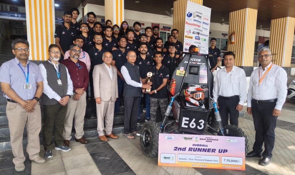 पिथमपुर, मध्य प्रदेश येथील नॅशनल ऑटोमोटिव्ह टेस्ट ट्रॅक्स येथे बाहा एसएई इंडिया – २०२६ या राष्ट्रीय स्पर्धेत पिंपरी चिंचवड कॉलेज ऑफ इंजीनियरिंग (पीसीसीओई) मधील टीम रेड बॅरन च्या विद्यार्थ्यांनी तृतीय क्रमांकाचे ७५ हजार रुपयांचे पारितोषिक पटकावले. या विद्यार्थ्यांचा सत्कार विठ्ठल काळभोर यांच्या हस्ते करण्यात आला.