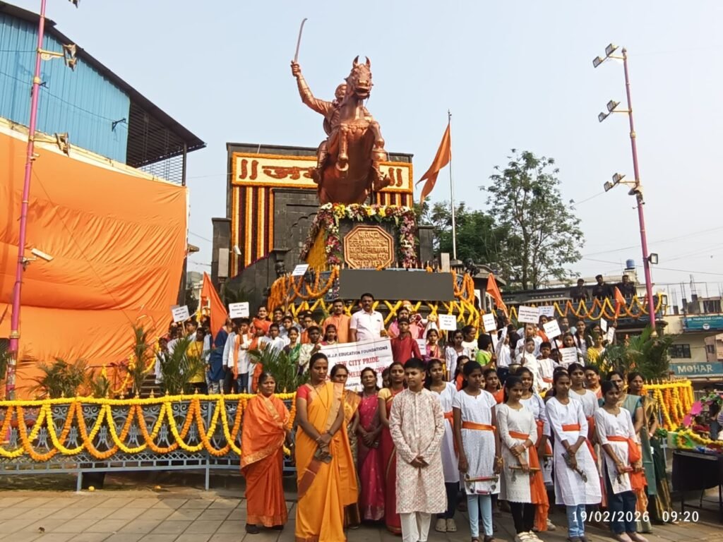 पिंपरी, (महाराष्ट्र ब्रेकिंग न्यूज ) – क्रांतिसूर्य महात्मा ज्योतिबा फुले एज्युकेशन फाउंडेशन संचालित न्यू सिटी प्राईड इंग्लिश मिडीयम स्कूल, रहाटणी येथे छत्रपती शिवाजी महाराज यांची जयंती उत्साहात साजरी करण्यात आली. कार्यक्रमाची सुरुवात शाळेपासून रहाटणी गावातील अश्वरूढ छत्रपती शिवाजी महाराजांच्या पुतळ्यापर्यंत भव्य रॅलीने करण्यात आली. विद्यार्थ्यांनी हातात भगवे झेंडे घेऊन “जय भवानी, जय शिवाजी”च्या घोषणांनी संपूर्ण परिसर दुमदुमून टाकला.