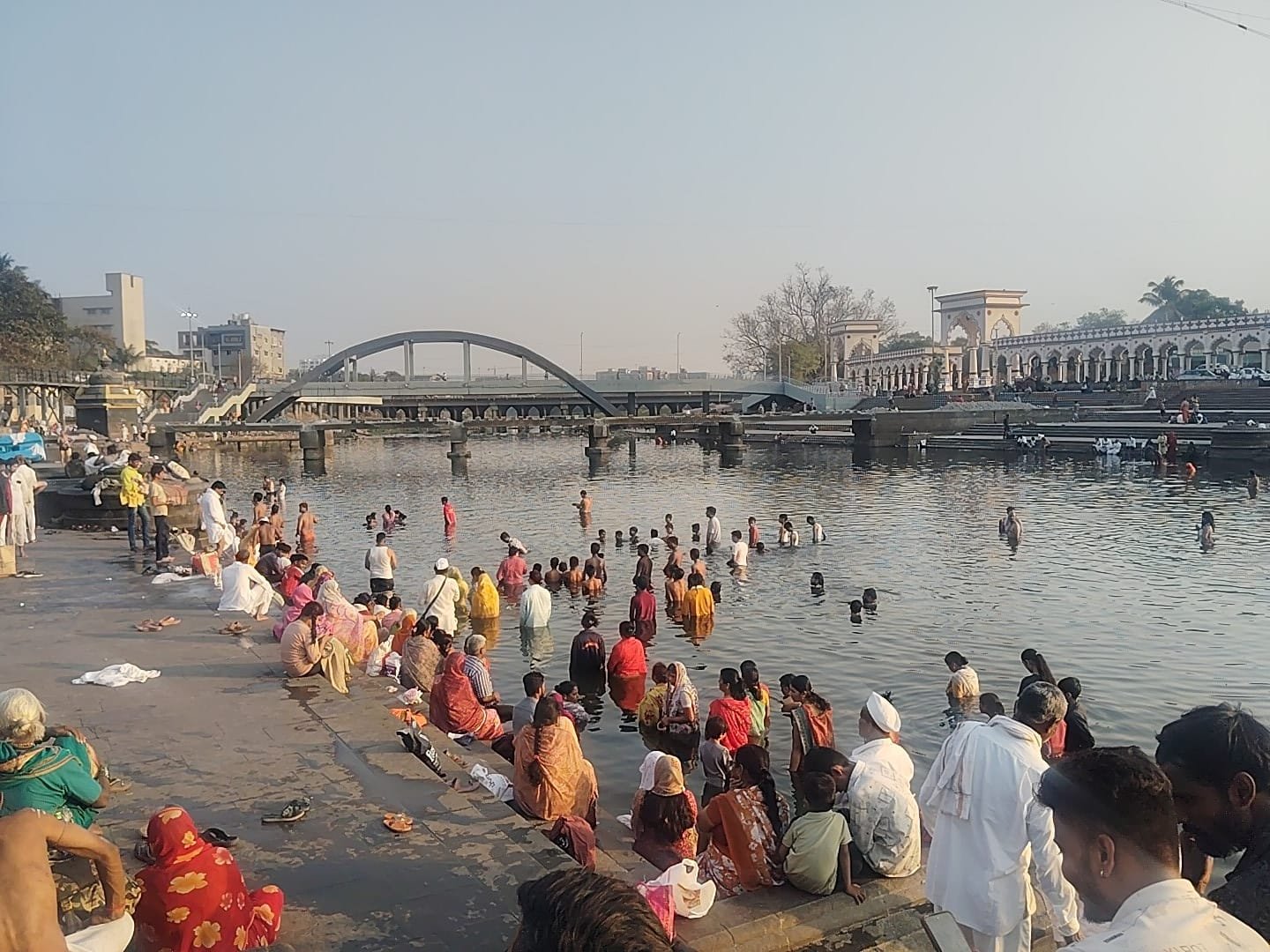 इंद्रायणी नदीवर भाविकांची प्रथापरंपरांचे पालन करीत स्नानास गर्दी